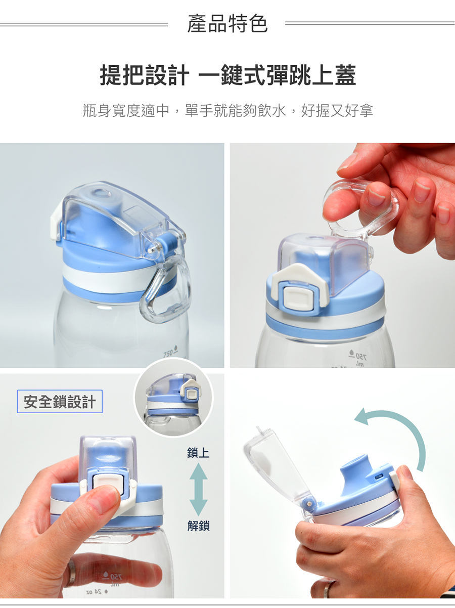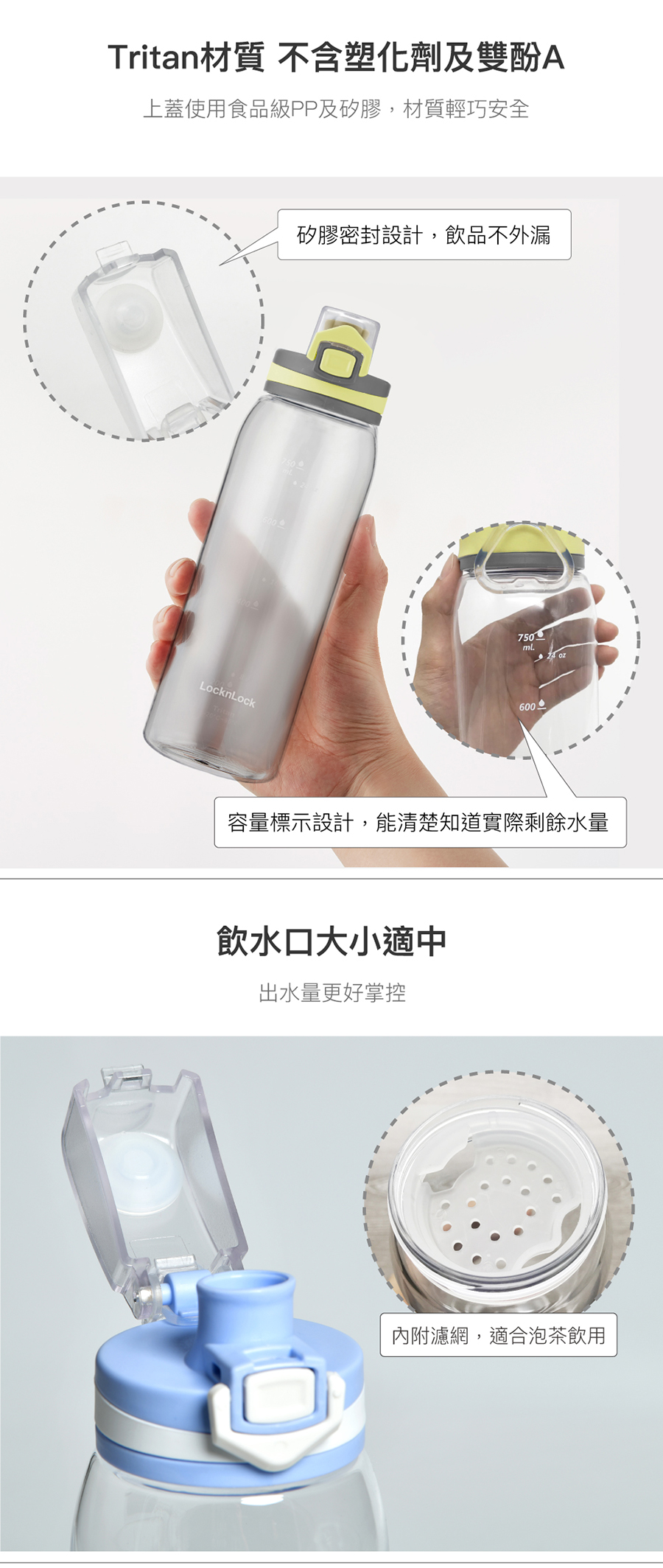 樂扣優質時尚彈蓋水壺900ml-Tritan綠