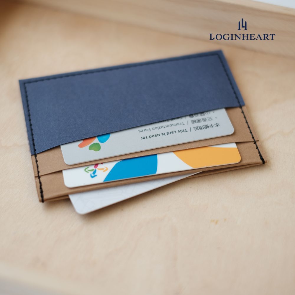 [LOGINHEART]紳士黑藍 多功能紙革卡夾 五個卡層 綠色時尚 環保 天然纖維 進口材料 台灣職人手作 質感