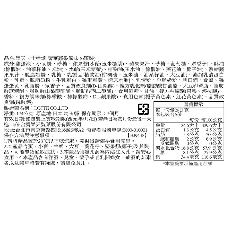 LOTTE 卡士達派-奢華蘋果風味