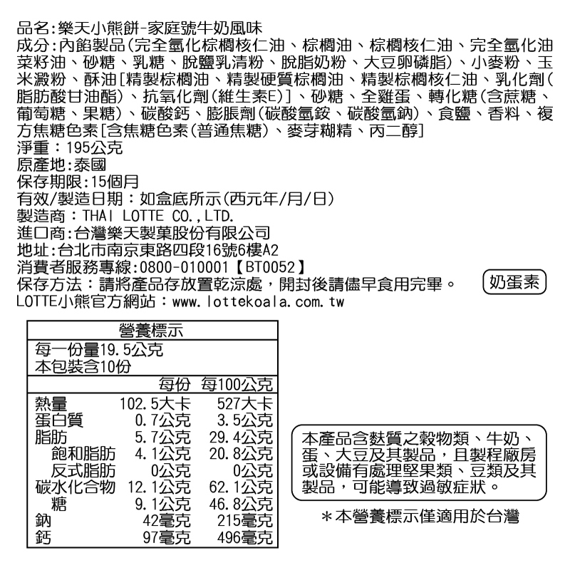 樂天小熊餅乾家庭號-牛奶風味