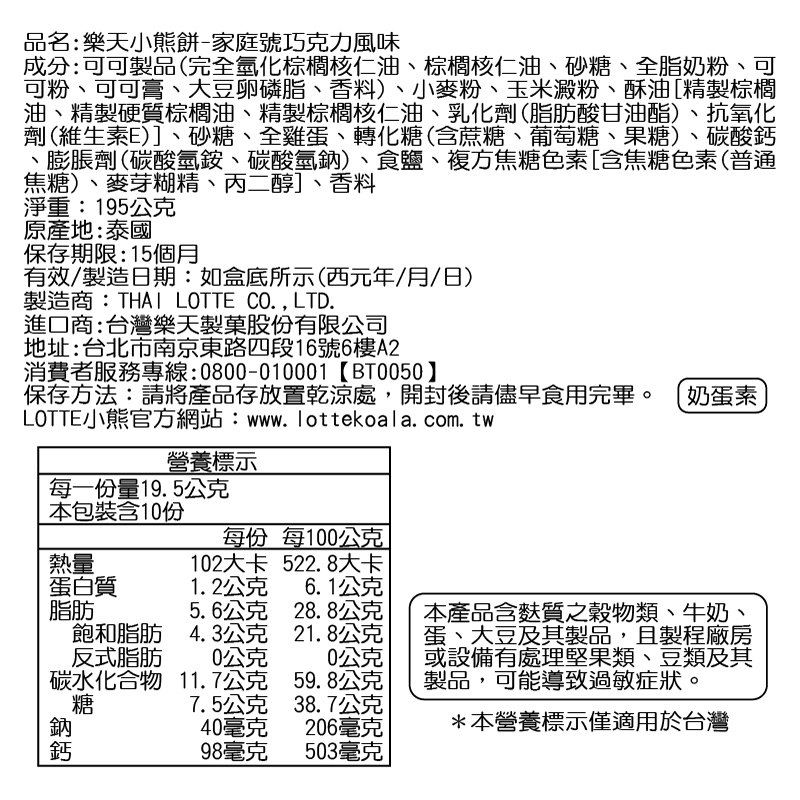 樂天小熊餅-巧克力風味(家庭號)