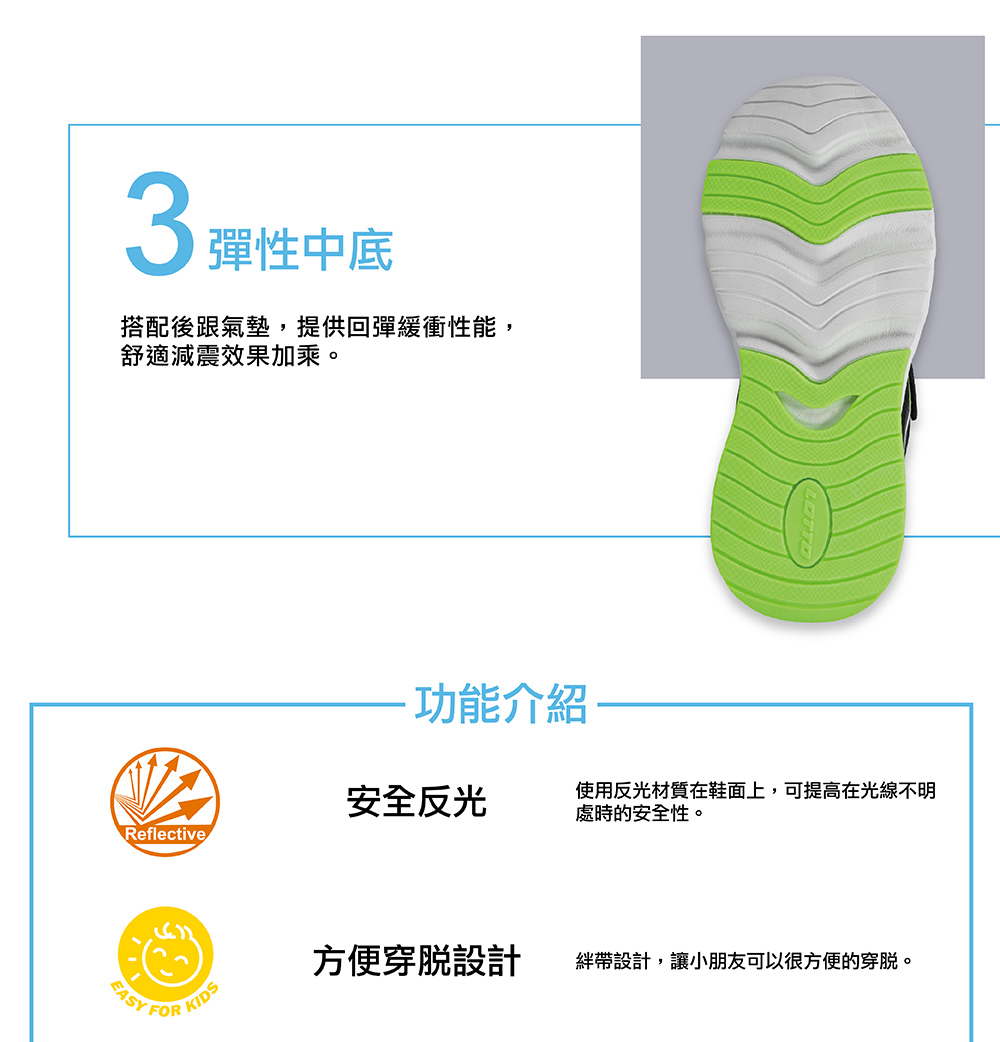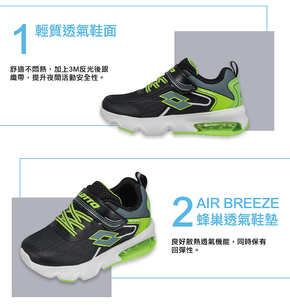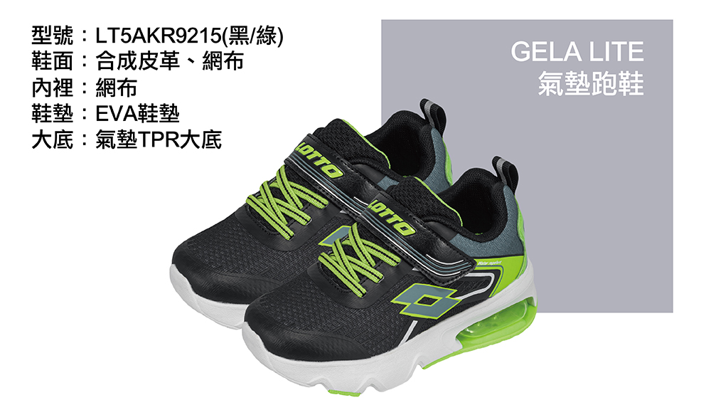 LOTTO童氣墊跑鞋-黑綠21