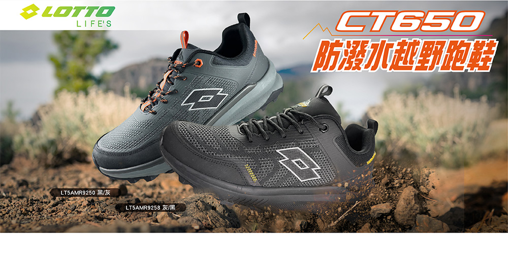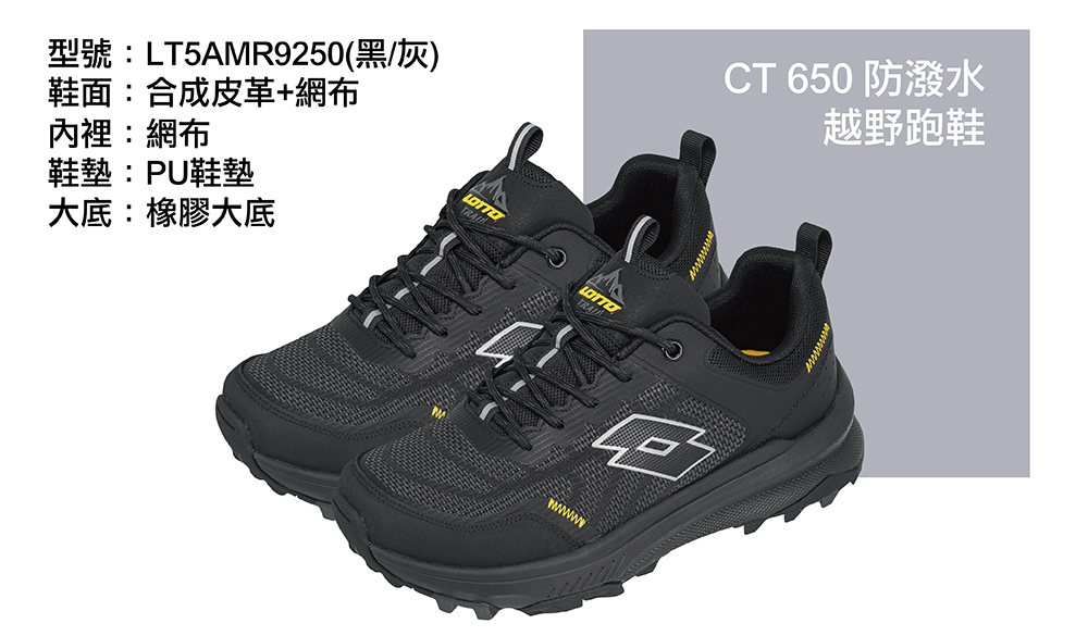 LOTTO男防潑水越野跑鞋-黑27.5