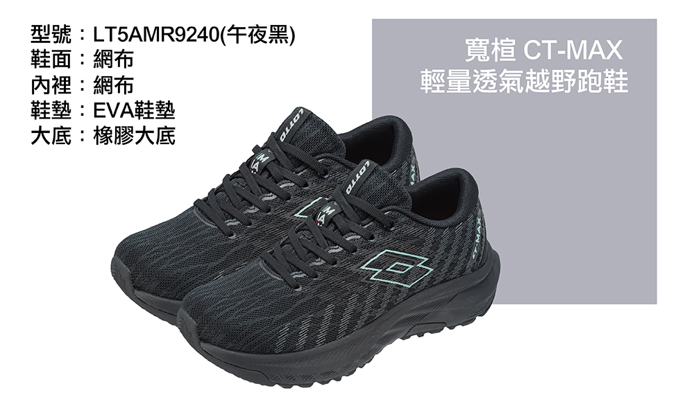 LOTTO男輕量透氣越野跑鞋-午夜黑27