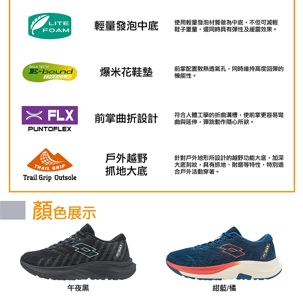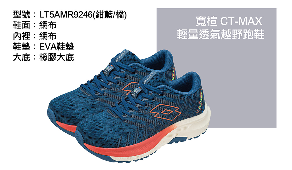 LOTTO男輕量透氣越野跑鞋-紺藍橘26.5