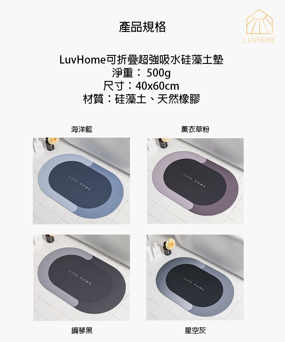 內容物:LuvHome|可折疊超強吸水硅藻土墊