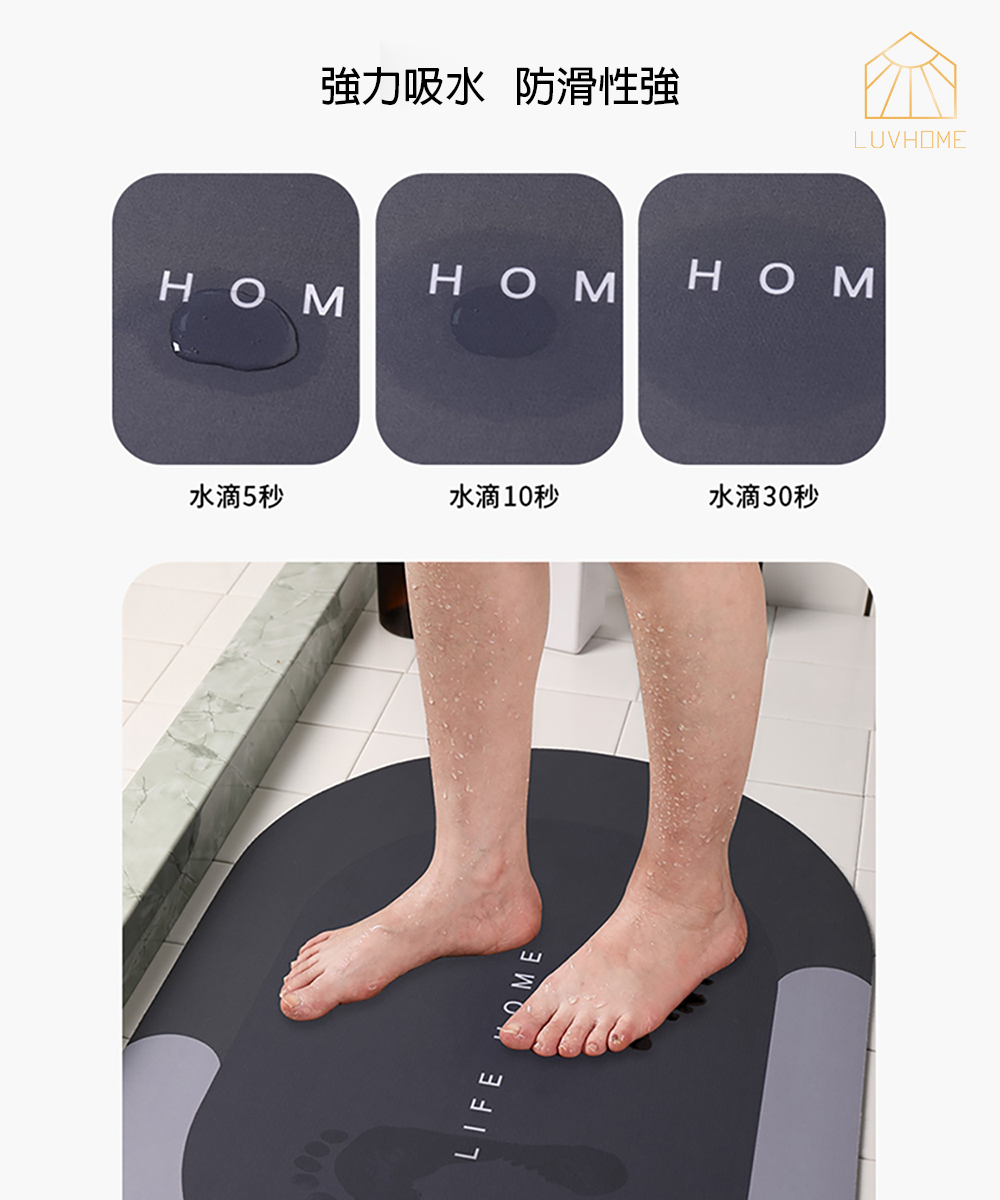 告訴您珪藻土的優勢,能快速吸收水分快速蒸發,防滑性強不怕滑倒,也能減少細菌孳生。地墊清洗方便,也能摺疊收納、輕鬆掛曬。多種顏色選擇,營造舒適生活。