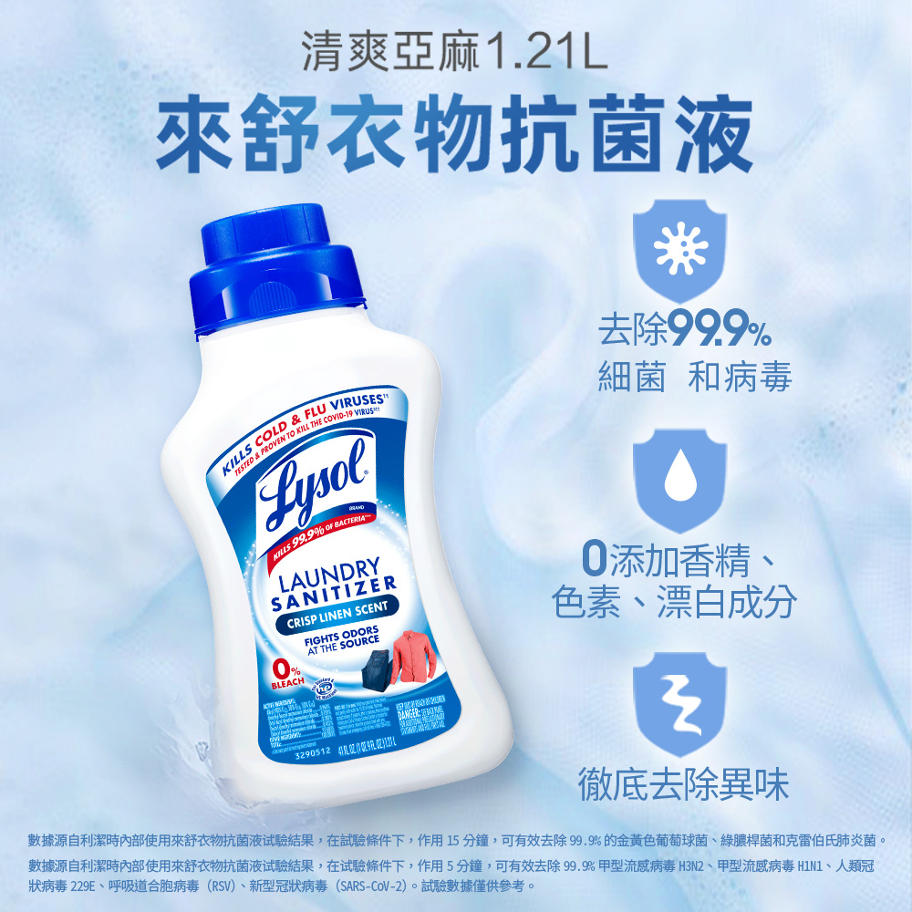 Lysol來舒 衣物抗菌液-清爽亞麻(1.21Lx3入組) 衣物抗菌液/抗菌劑/除蟎/內褲清潔/消毒