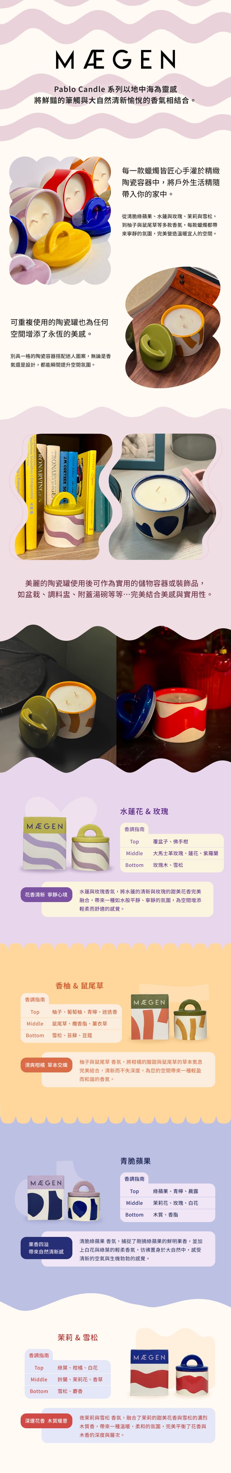 每一款 Pablo蠟燭 皆以地中海生活為靈感,手工倒入專屬陶瓷罐中,帶來獨特視覺與嗅覺饗宴。