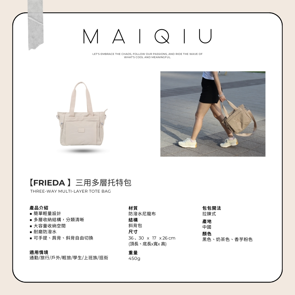 【商品介紹】輕量防潑水,超大容量實用兼具美觀的版型可手提、肩背、側背【商品規格】材質:防潑水斜紋尼龍結構:側肩包、手提袋尺寸: 36、 30 x 17 x 26 cm (長*寬*高)頂部 底部重量:450 g顏色:黑色、奶茶色、粉紅色(顏色可能會因攝影或螢幕有些微差異)