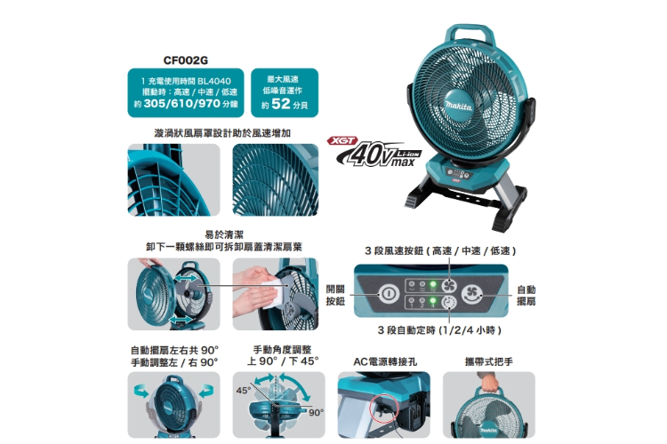 MAKITA牧田 CF002GZ 40V電風扇(單主機 無電池 無充電器)※此賣場為單主機 無電池 無充電器附件:主機*1、AC適配器*1
