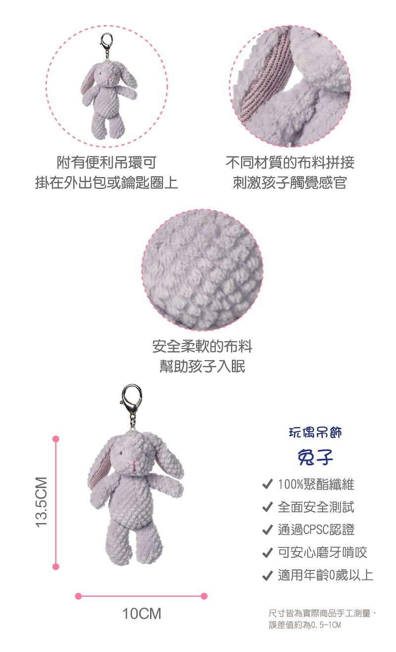 高貴又甜美的小兔兔,搭配柔軟布料和精緻的刺繡,陪伴讓寶寶臉上綻放笑容