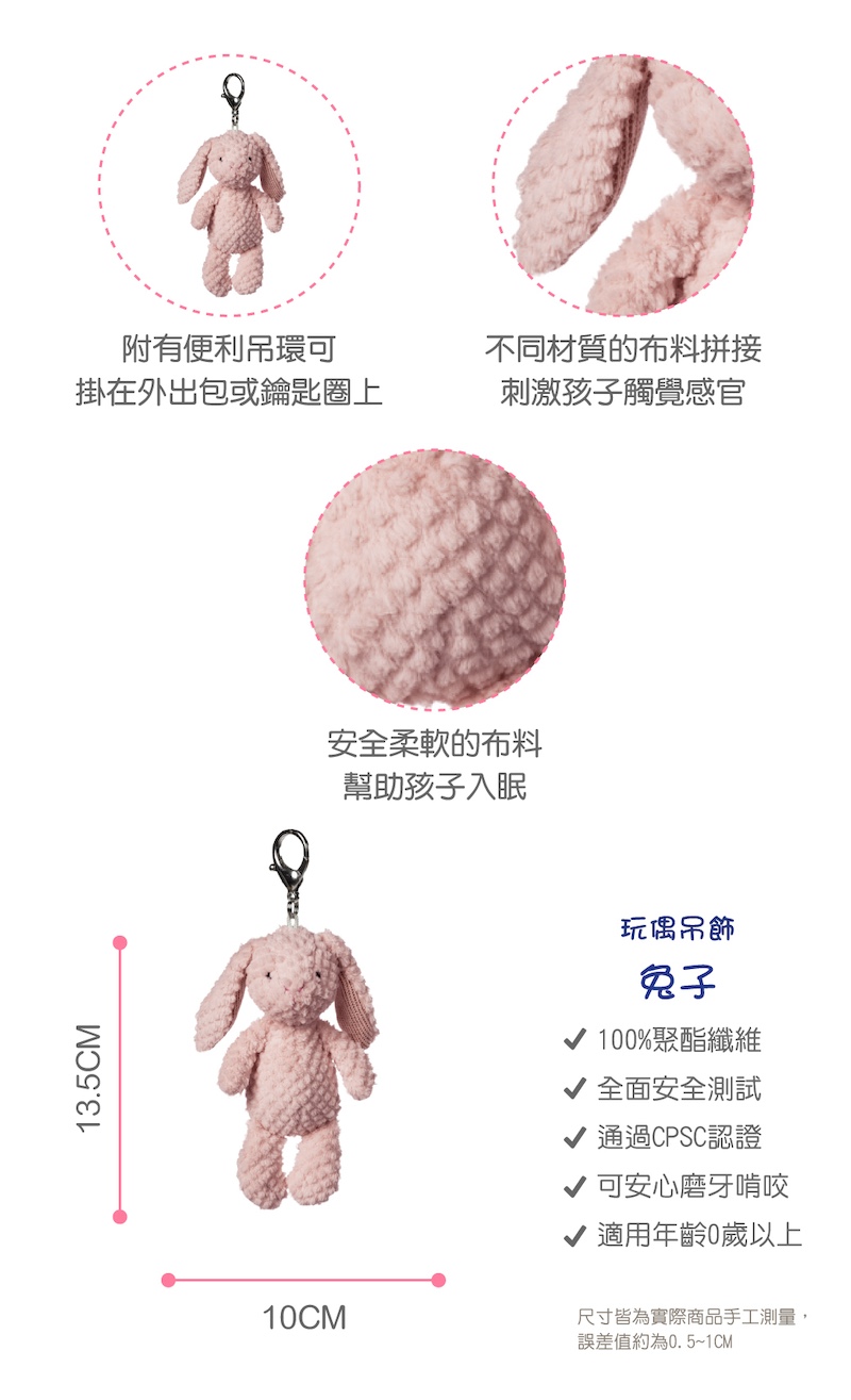 高貴又甜美的小兔兔,搭配柔軟布料和精緻的刺繡,陪伴讓寶寶臉上綻放笑容