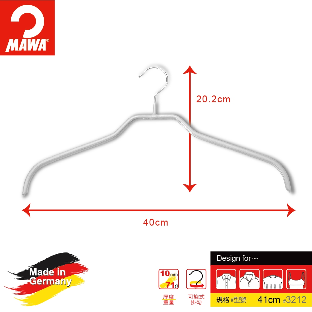 【德國MAWA】德國原裝進口 無痕止滑 時尚簡約衣架41cm 2入/白