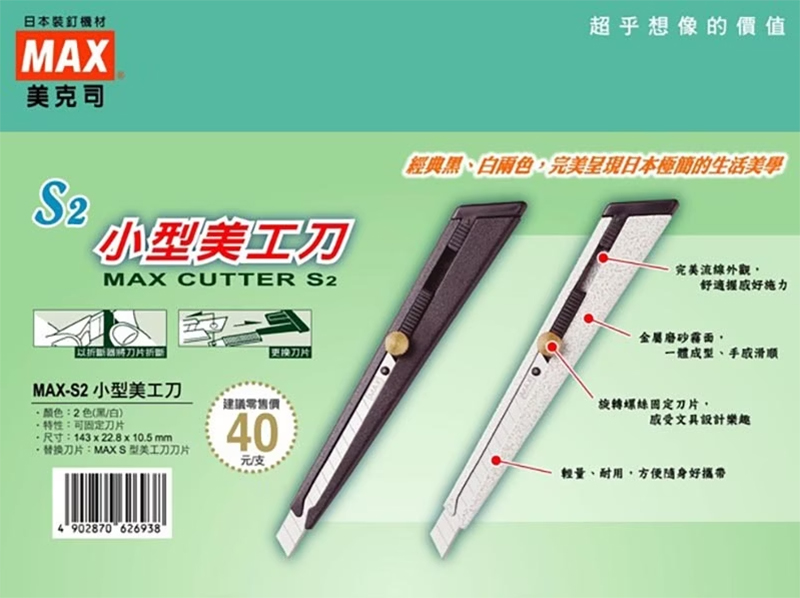 MAX 美克司 小型 美工刀 顏色隨機 /支 MAX-S2