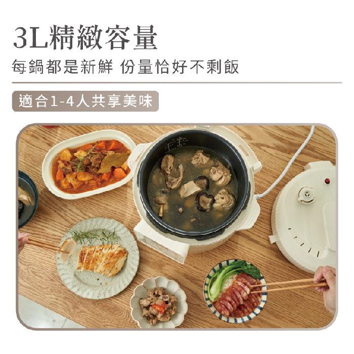 2公升容量設計,滿足小家庭需求,煮飯、煲湯、燉肉皆適宜。