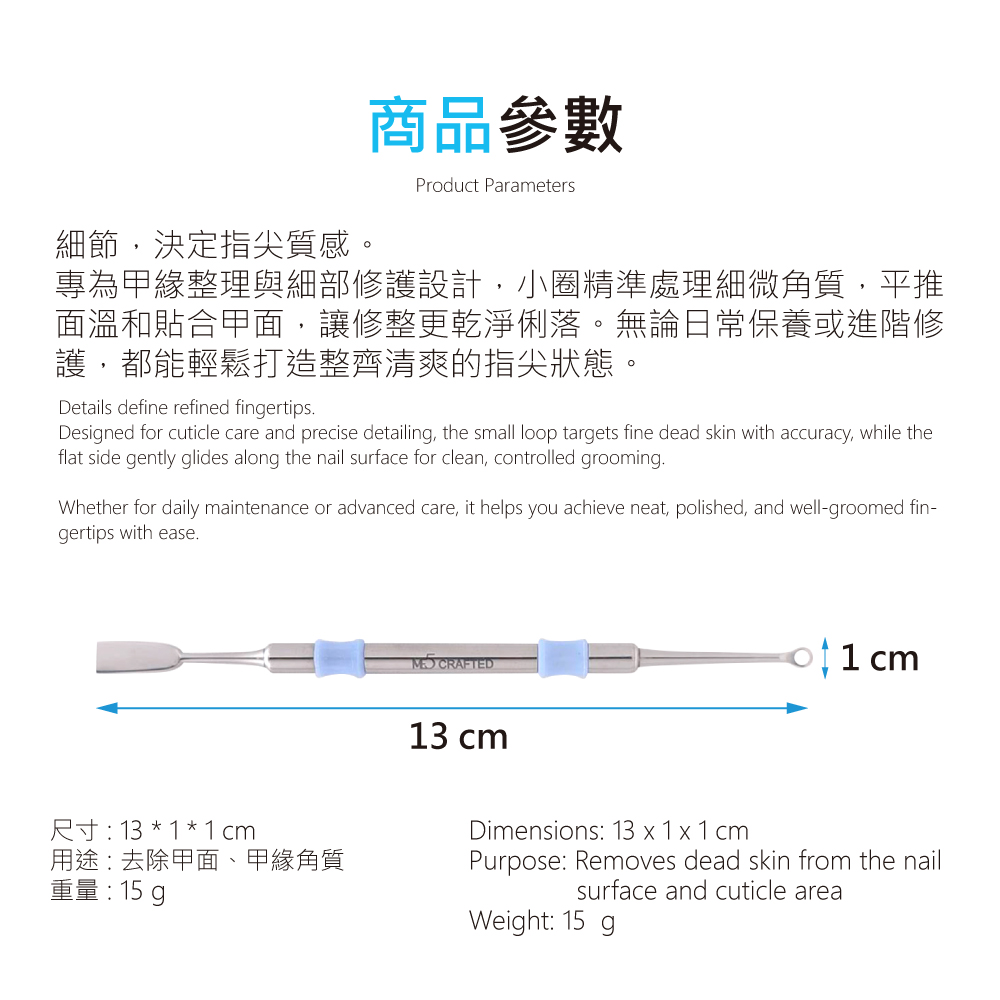 小圈精準設計:細緻小圈頭,輕鬆推整甲緣與細部甘皮。