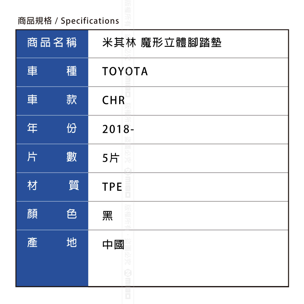 MICHELIN 米其林 豐田 TOYOTA C-HR 2017-22 全包式立體腳踏墊 不適用尊爵/AWD車款