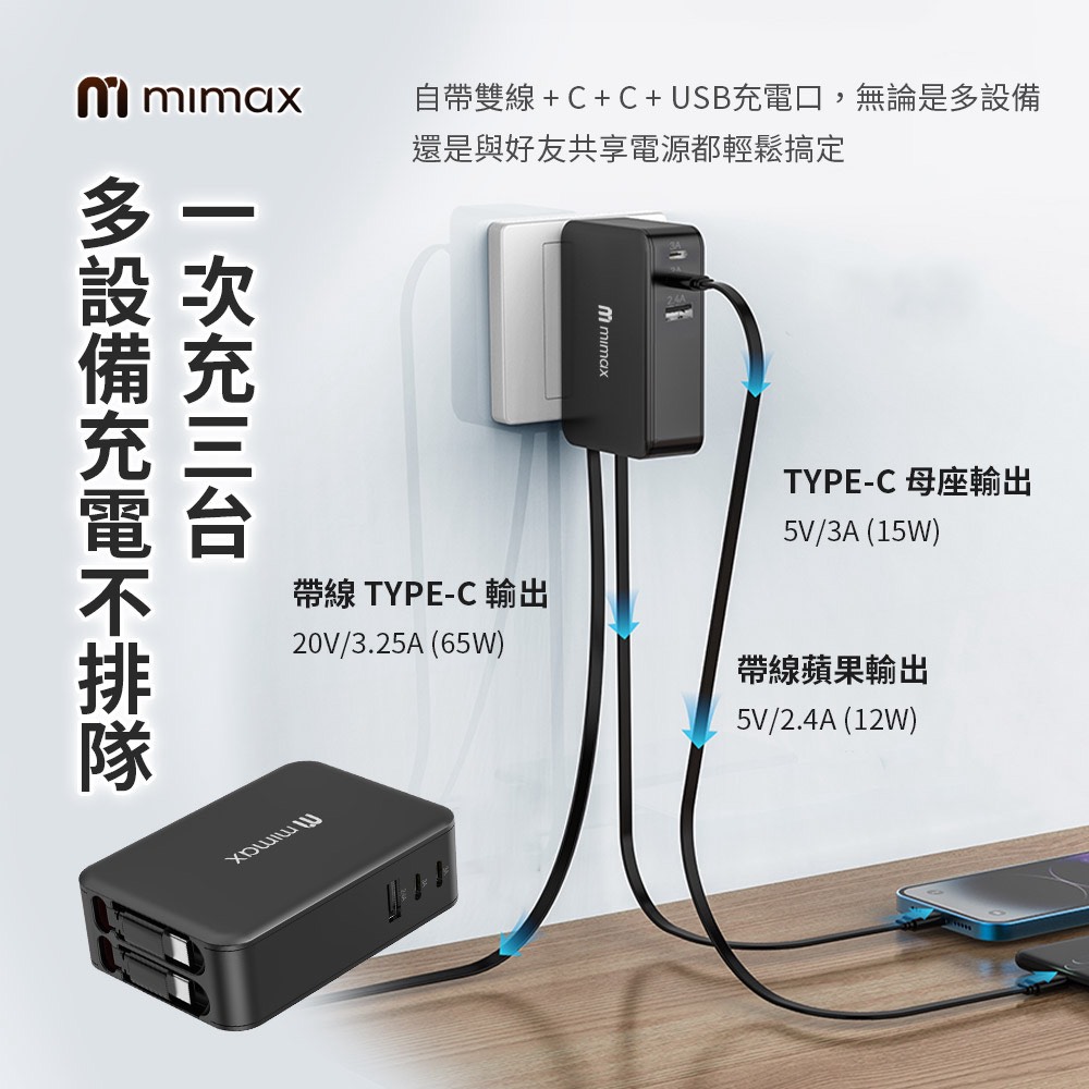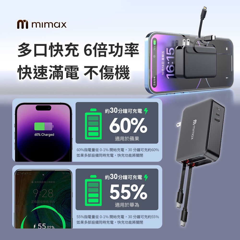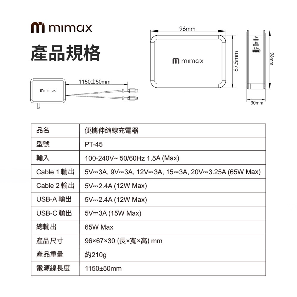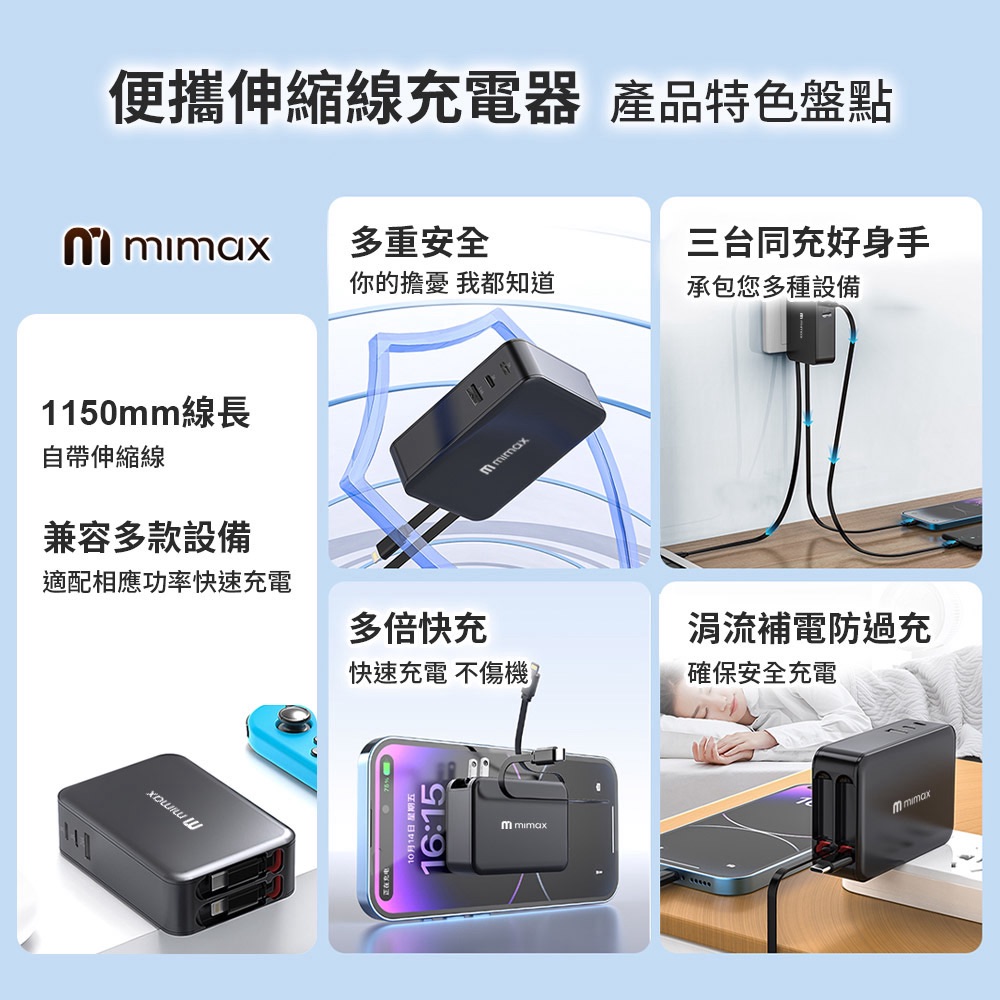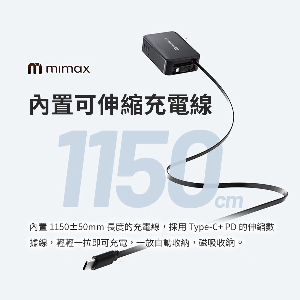 米覓 便攜伸縮線充電器 115mm 65W氮化鎵