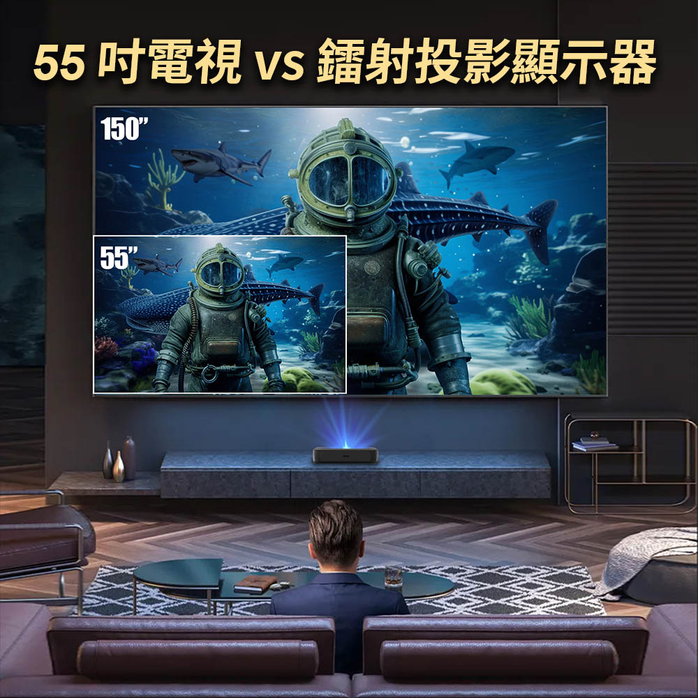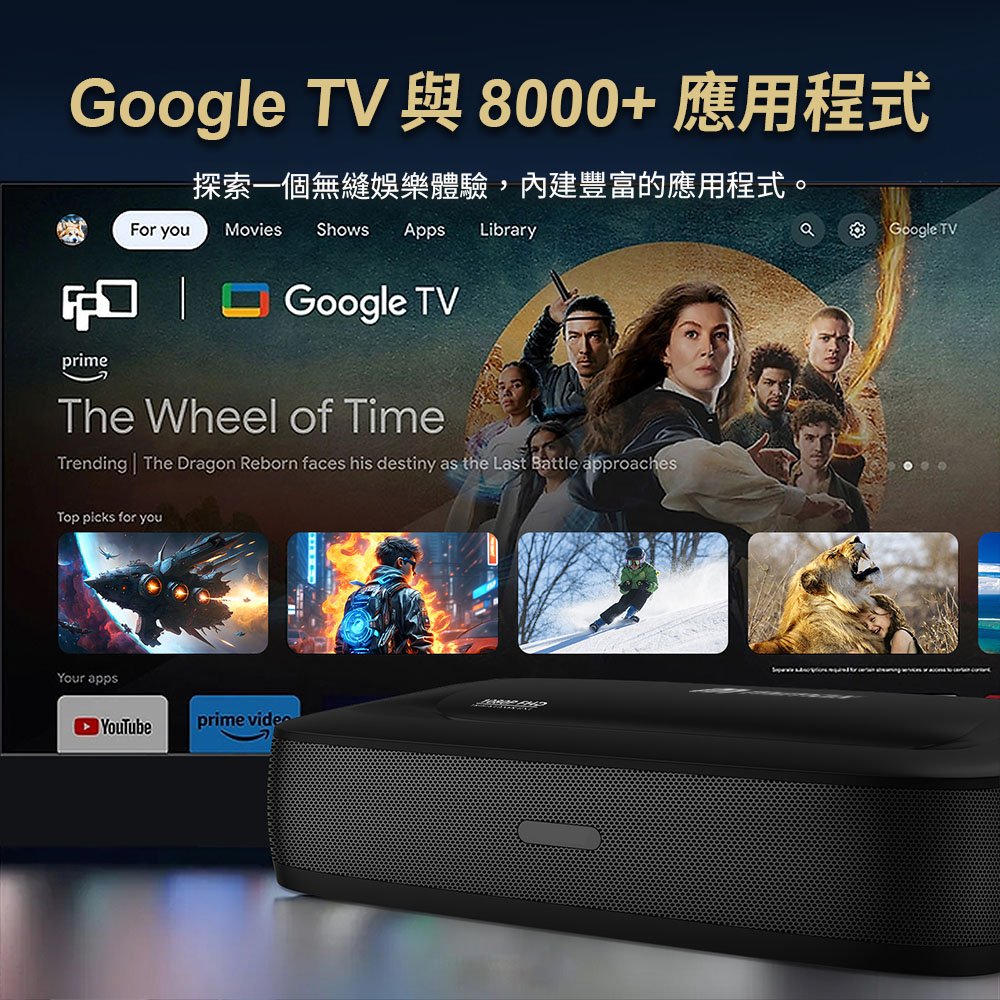 🔹三色激光雷射驅動亮度🔹1080P高畫質🔹1200ANSI流明🔹超短焦投射出40-100英吋大螢幕🔹內建電池/PD快速充電🔹梯形校正/自動對焦🔹Google TV與8000+應用程式🔹支援多種設備