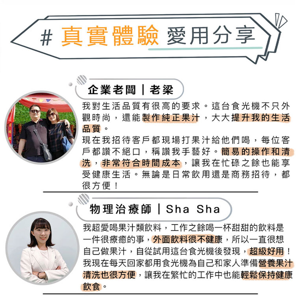 Mini Pro原味食光機採用先進的低溫冷壓慢磨技術,選用安全無毒頂級『Tritan材質』,