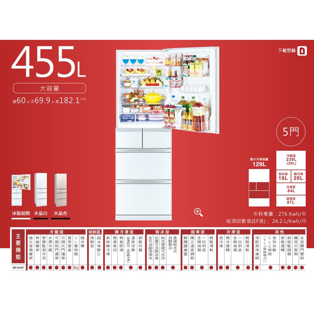 MITSUBISHI 三菱 日本原裝455L五門變頻冰箱 MR-B46F