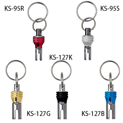 製品番号 品 名 サイズ (mm) 重 量 (g) 総重量 (g) KS-95R インパクト用ソケットホルダー9.5角用レッド 88 × 28 × 16 22 23 KS-95S インパクト用ソケットホルダー9.5角用シルバー 88 × 28 × 16 22 23 KS-127B インパクト用ソケットホルダー12.7角用ブルー 88 × 28 × 16 32 33 KS-127G インパクト用ソケットホルダー12.7角用ゴールド 88 × 28 × 16 32 33 KS-127K インパクト用ソケットホルダー12.7角用ブラック 88 × 28 × 16 32 33