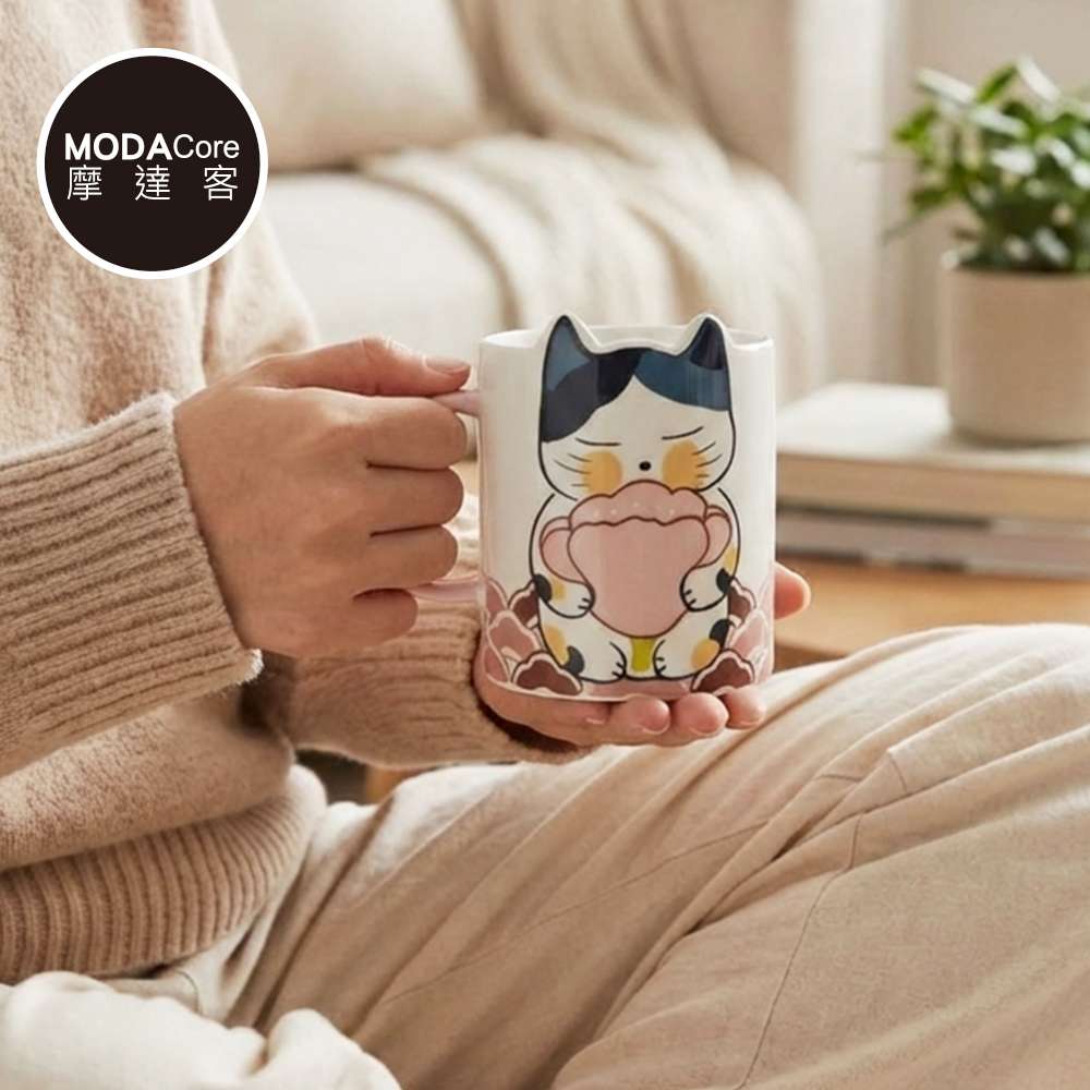 【摩達客】◉開運招財◉萌系療癒開運招財貓抱福陶瓷粉色馬克杯