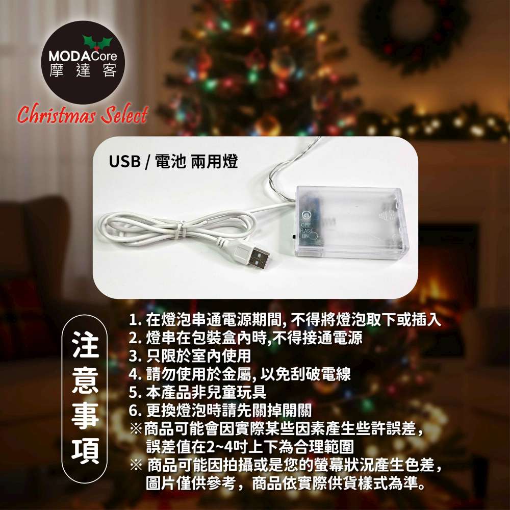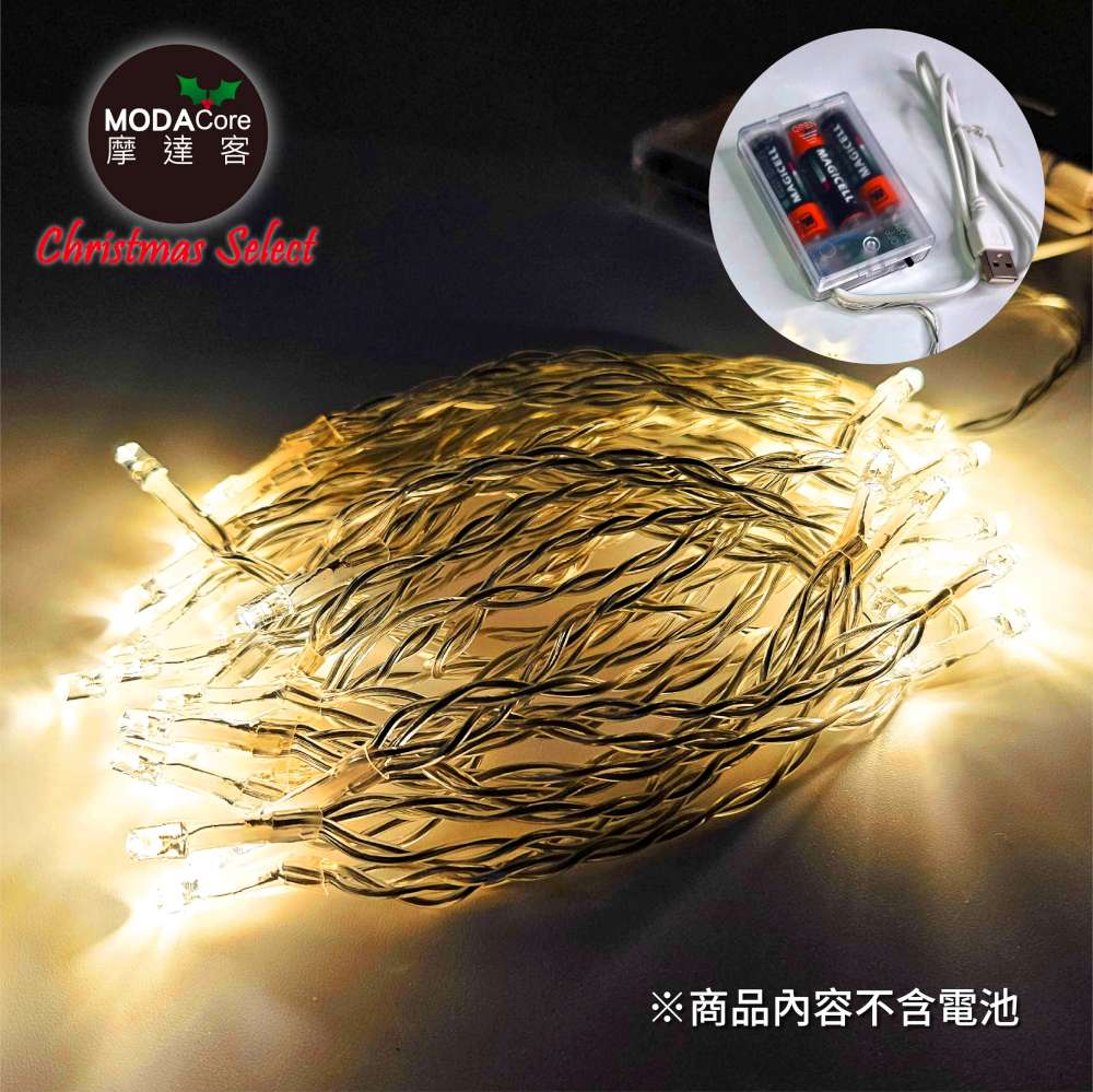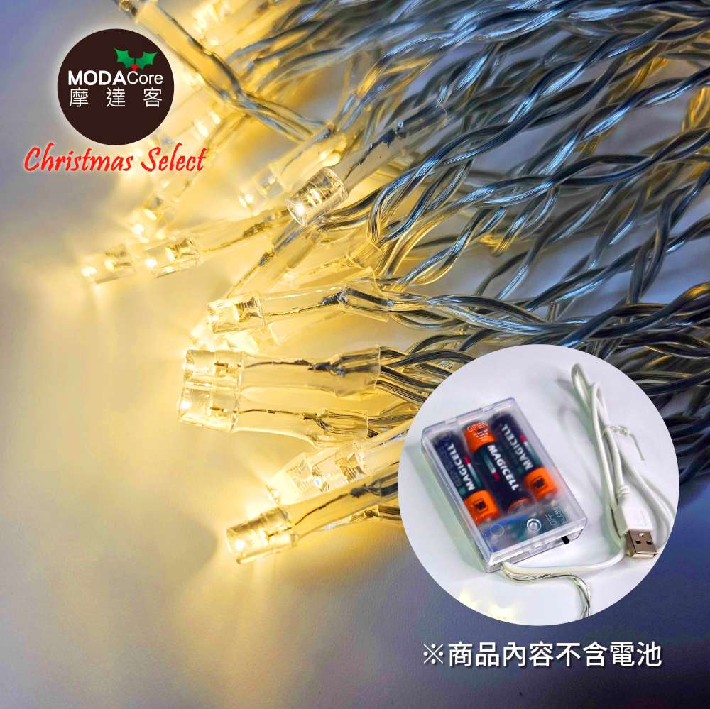 摩達客-50燈LED燈串暖白光_USB+電池盒兩用充電-聖誕燈樹燈露營燈