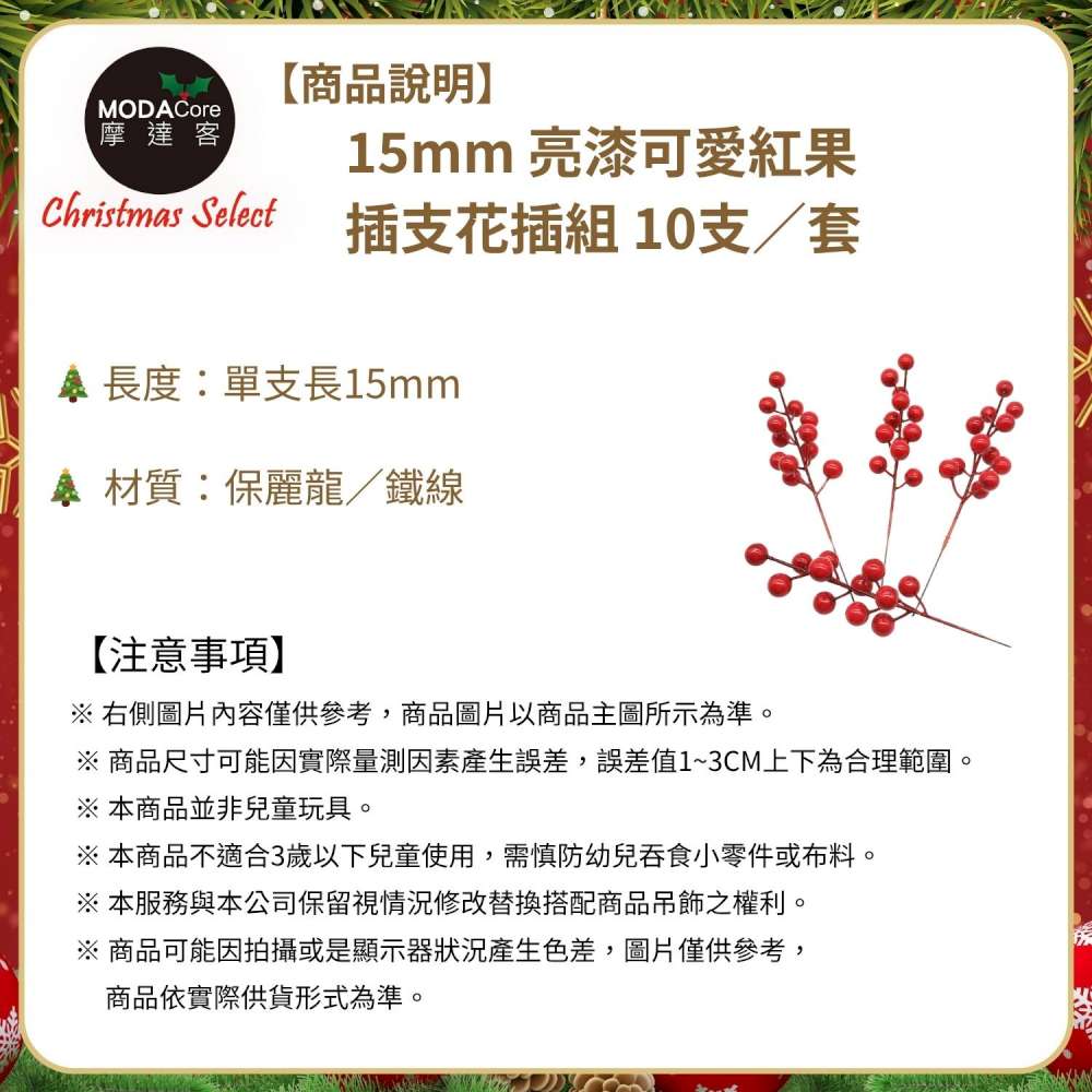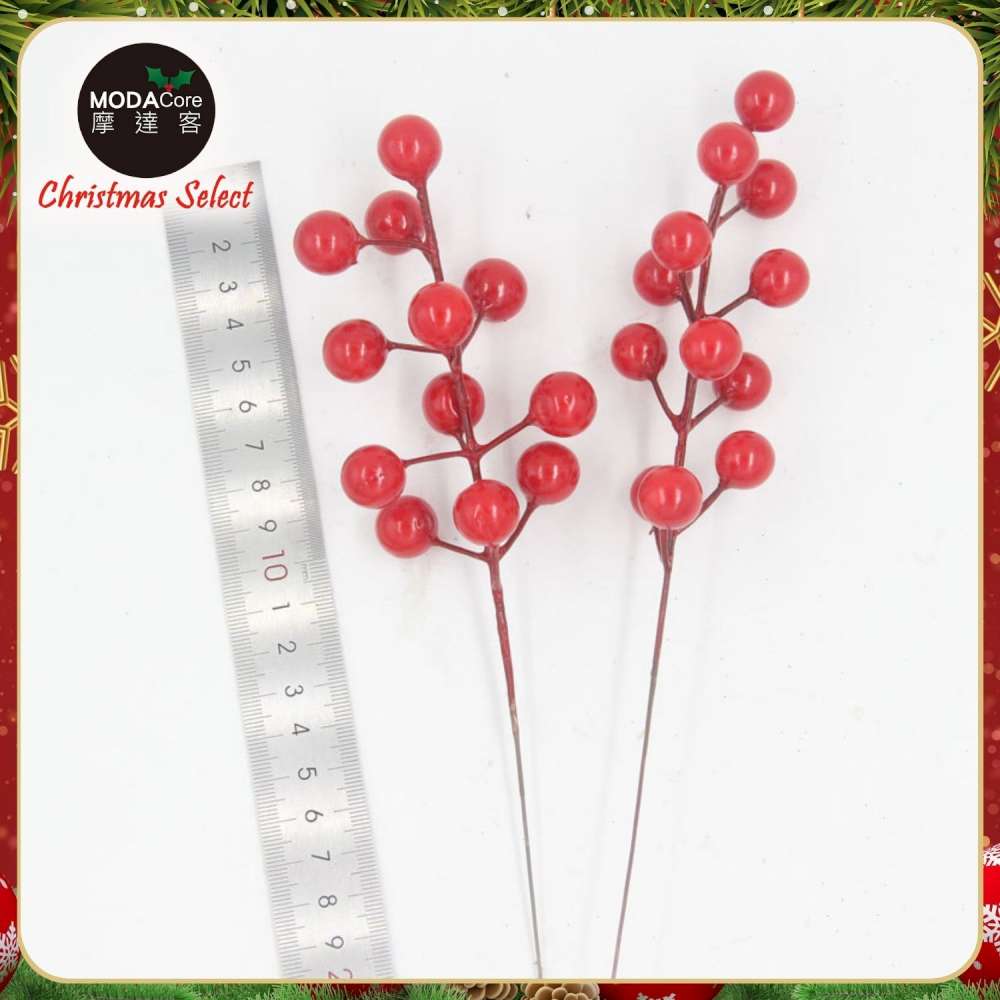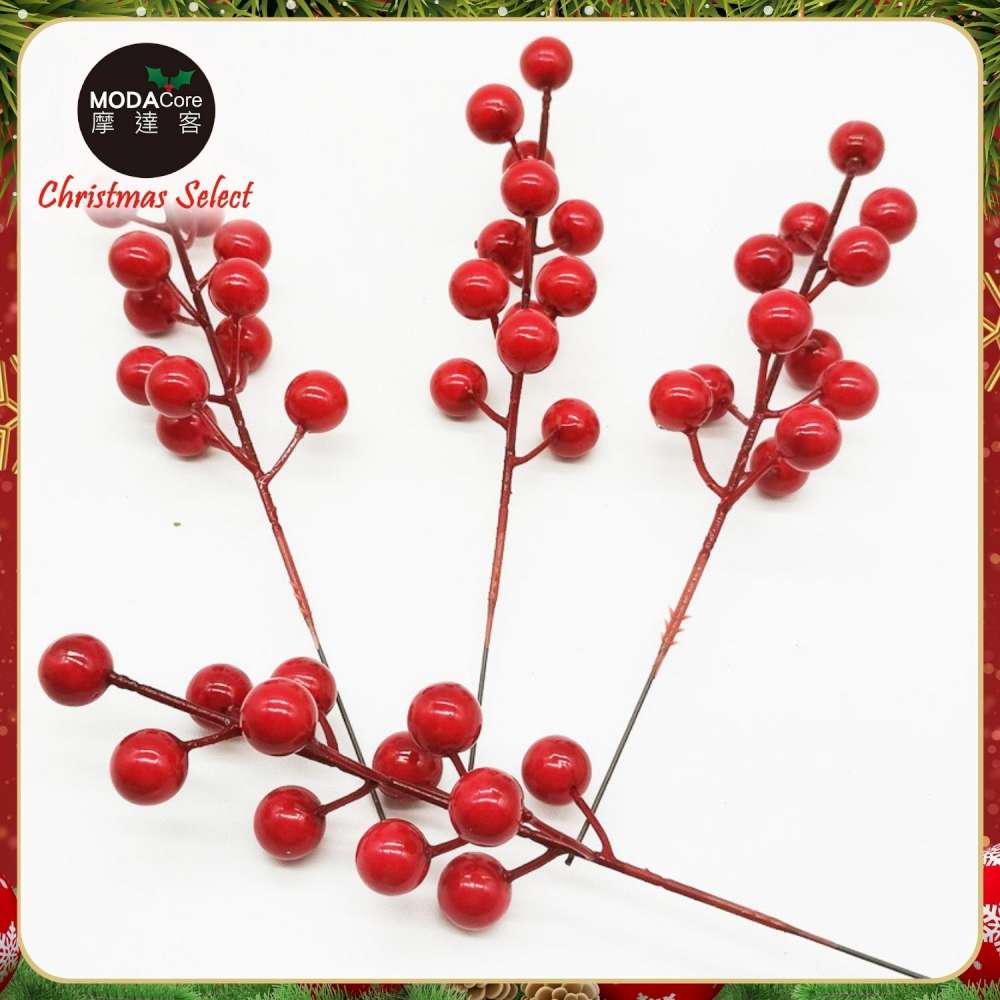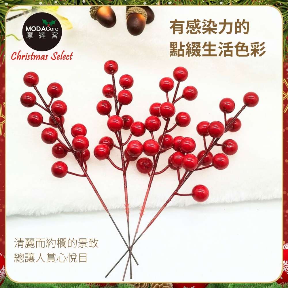 摩達客15mm可愛亮漆紅果插枝10枝組/插花聖誕耶誕新年佈置