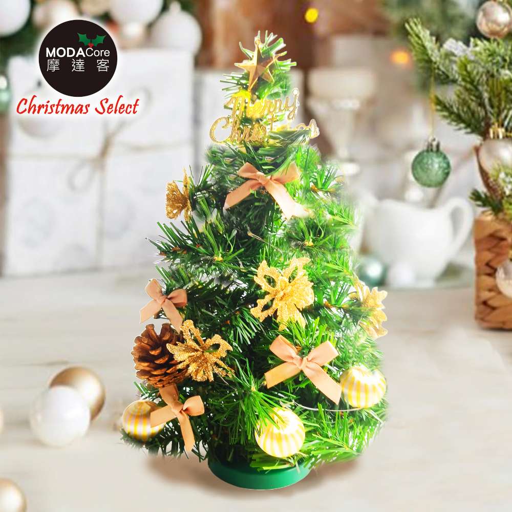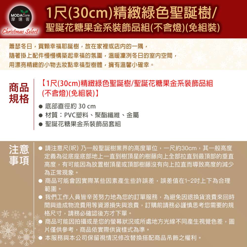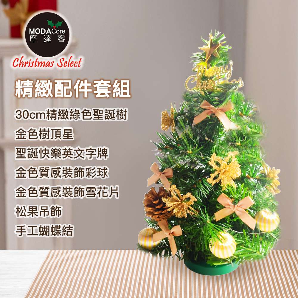 摩達客-台灣製1尺30cm精緻綠色聖誕樹+聖誕花糖果金系裝飾品組_免組裝_本島免運費