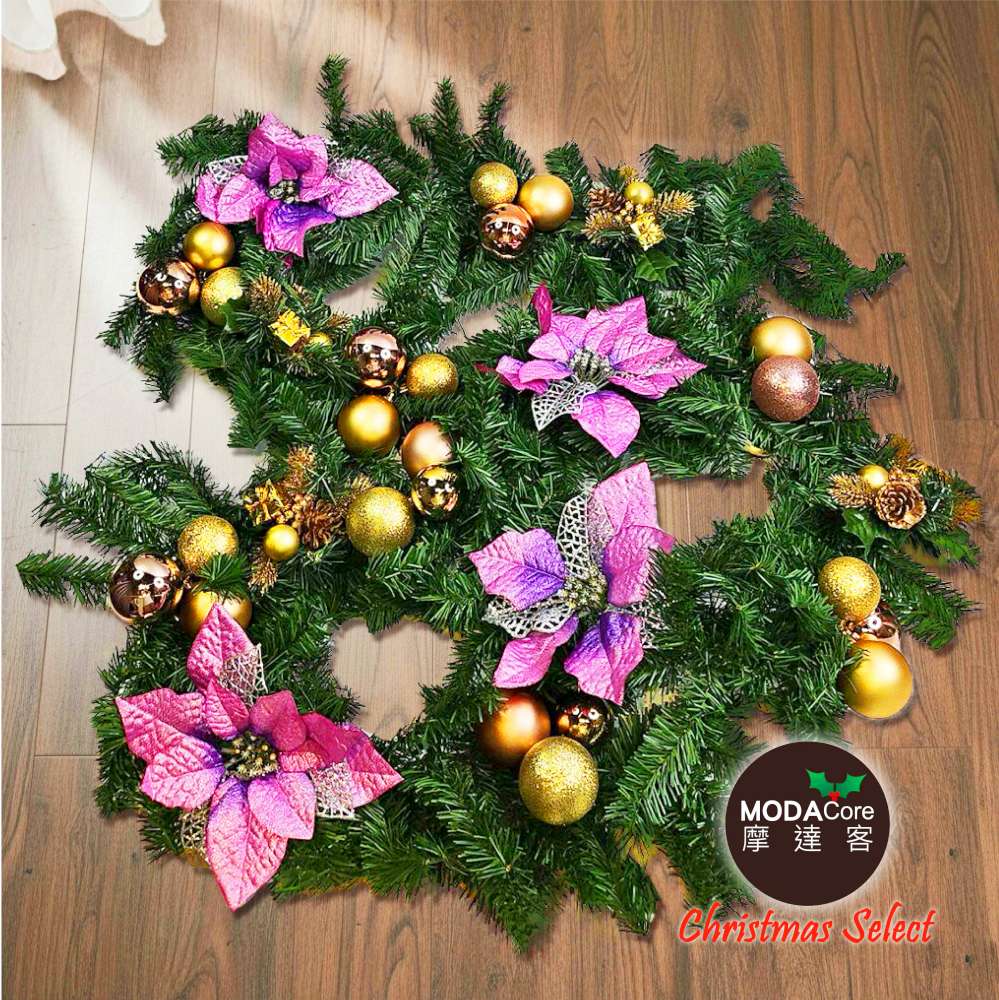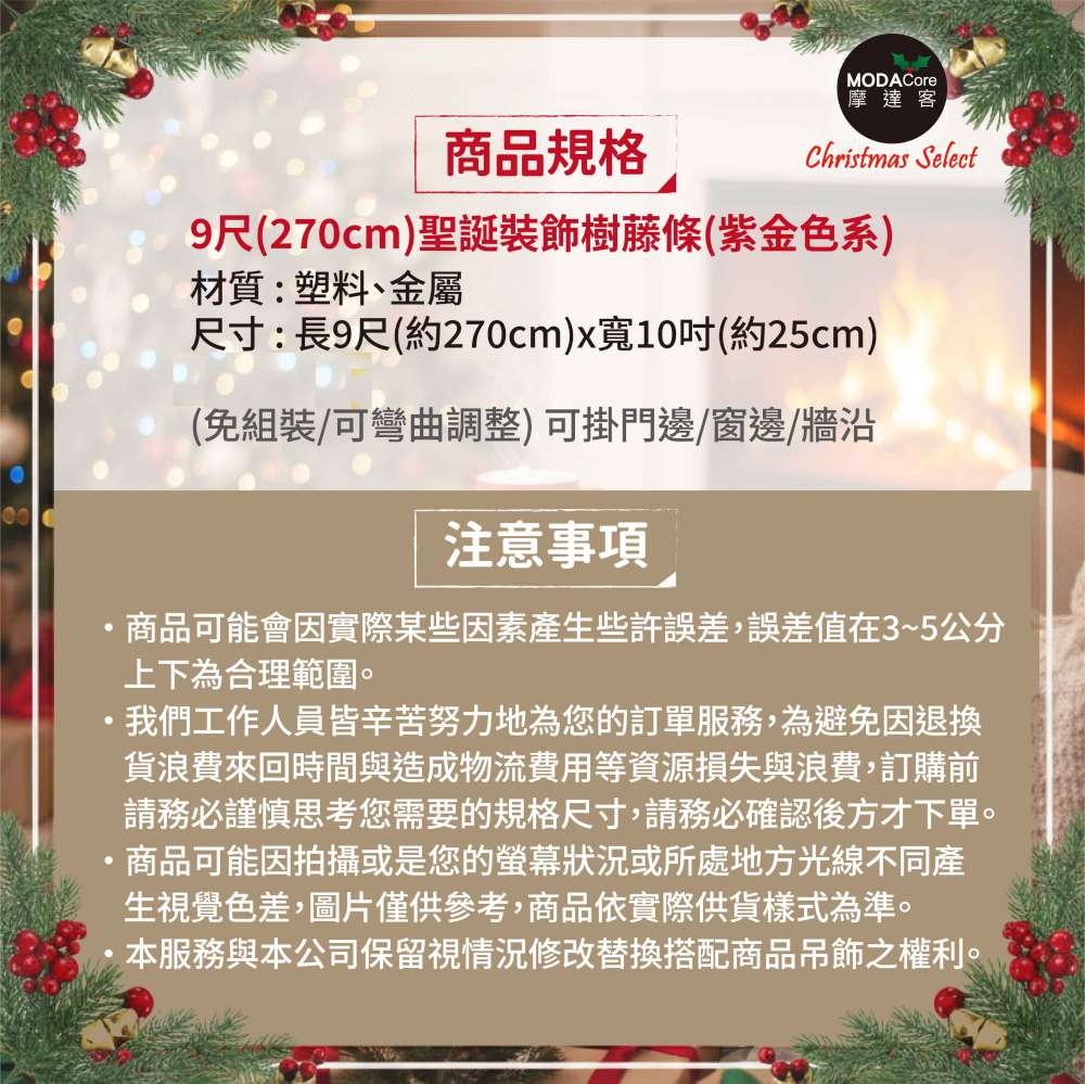 摩達客9尺/270cm聖誕裝飾樹藤條_浪漫紫金系-免組裝/可彎曲調整_可掛門邊/窗邊/牆沿_本島免運費