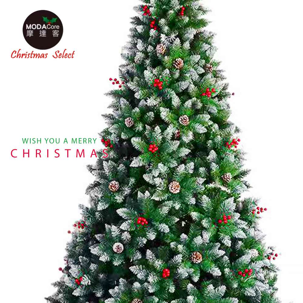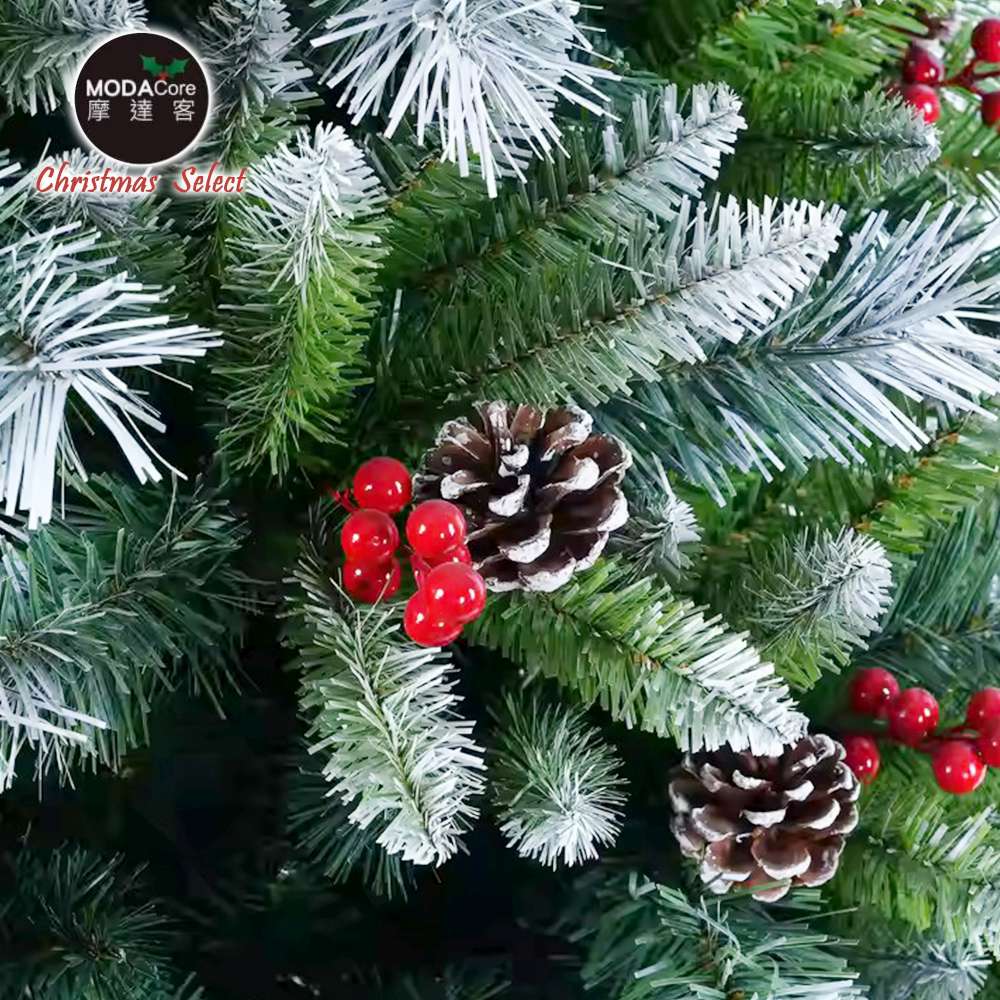 摩達客6尺180cm刷白雪頭紅果松果混合裝飾綠色聖誕樹_不含燈_本島免運費