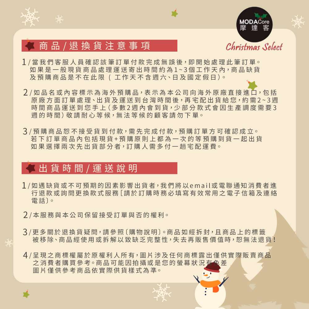 【退/換貨&售後服務】