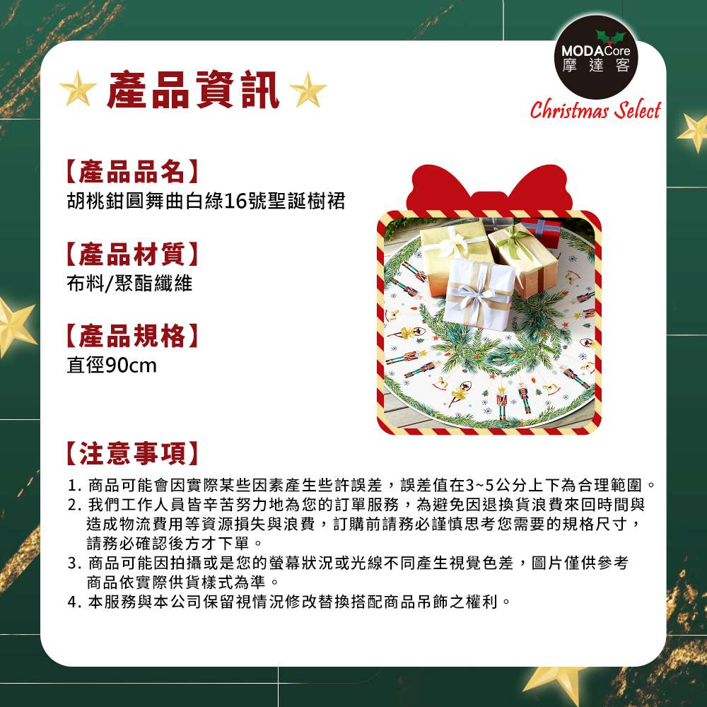 摩達客胡桃鉗圓舞曲白綠16號聖誕樹裙90cm_聖誕樹裝飾底墊