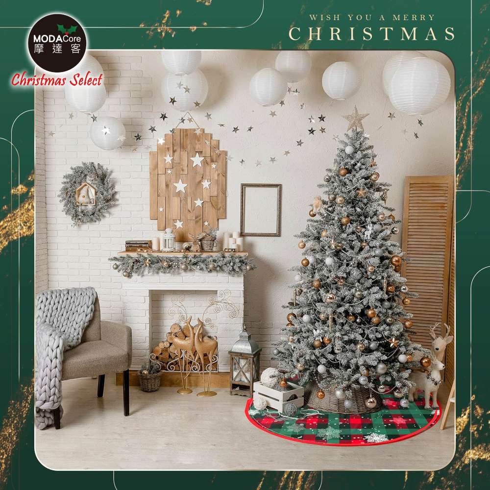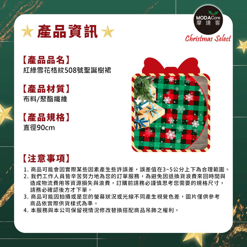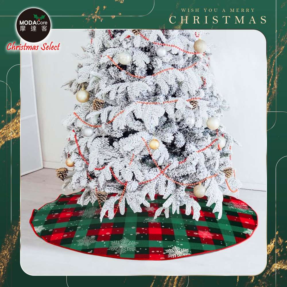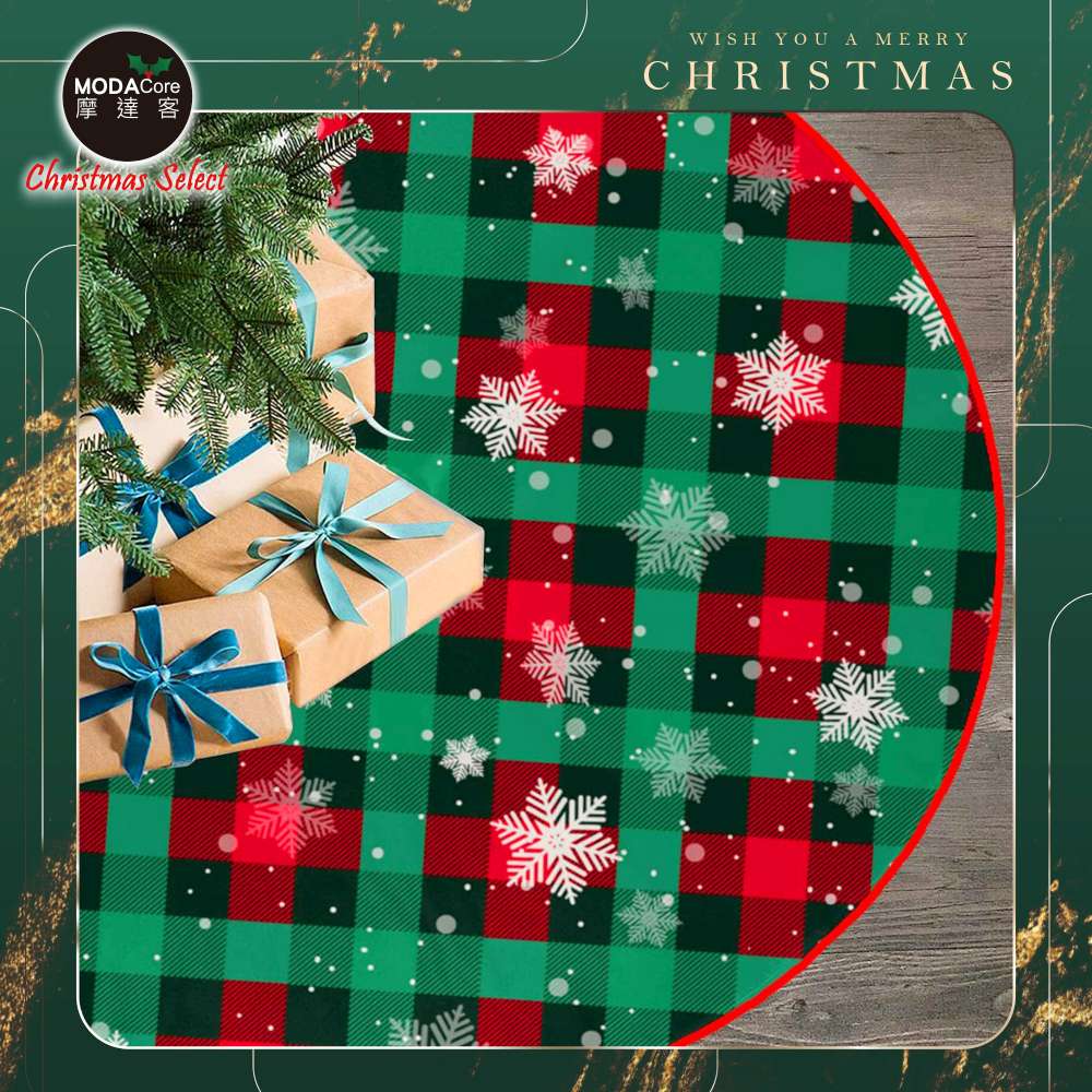 摩達客紅綠雪花格紋508號聖誕樹裙90cm_聖誕樹裝飾底墊