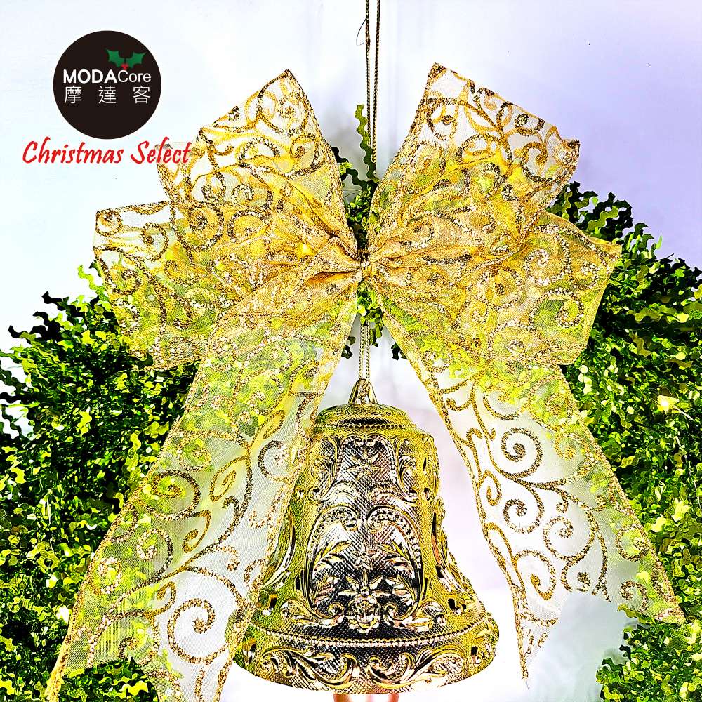 摩達客11吋優雅香檳玫金系金蔥彎絲聖誕花圈+20燈LED暖白光燈串_本島免運費