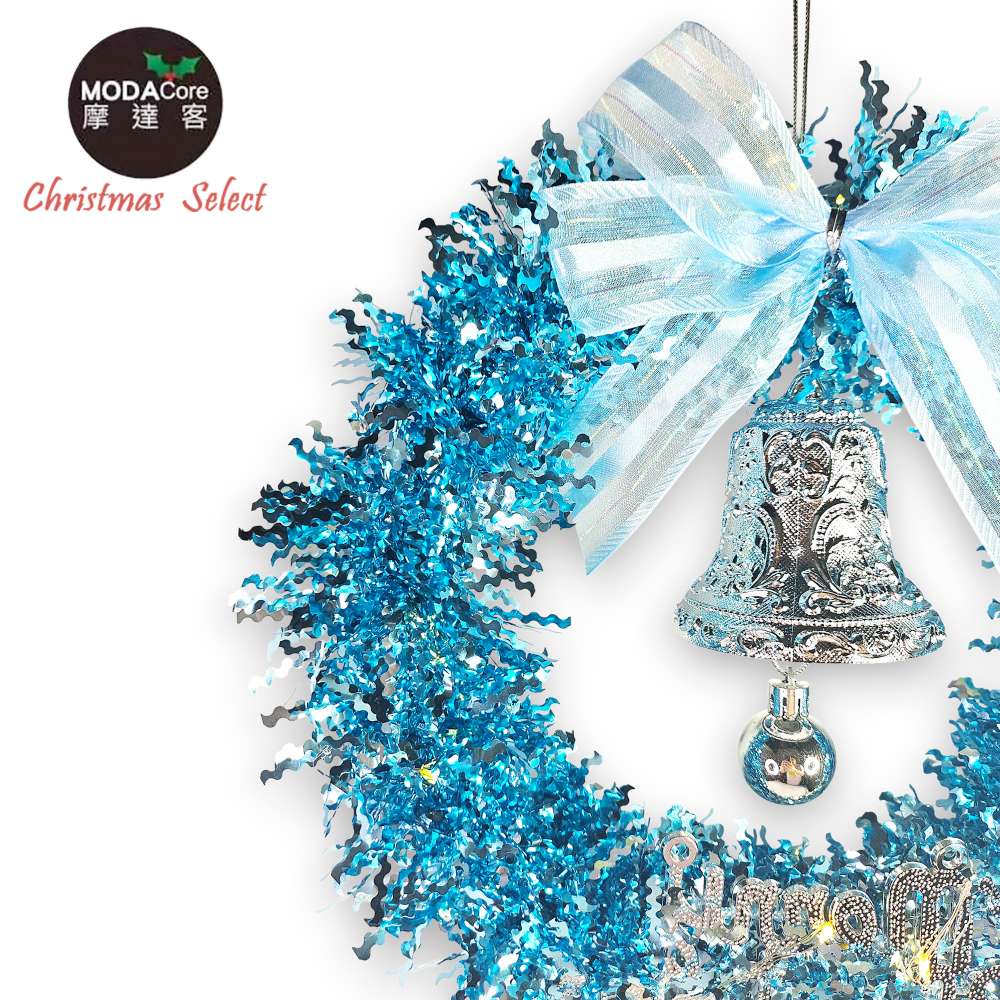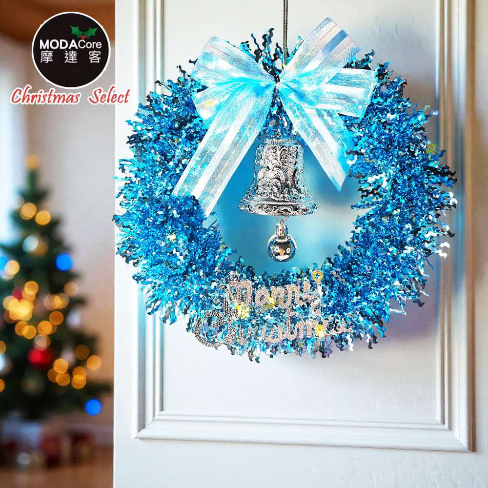 摩達客11吋夢幻土耳其藍系金蔥彎絲聖誕花圈_台灣工藝免組裝_本島免運費