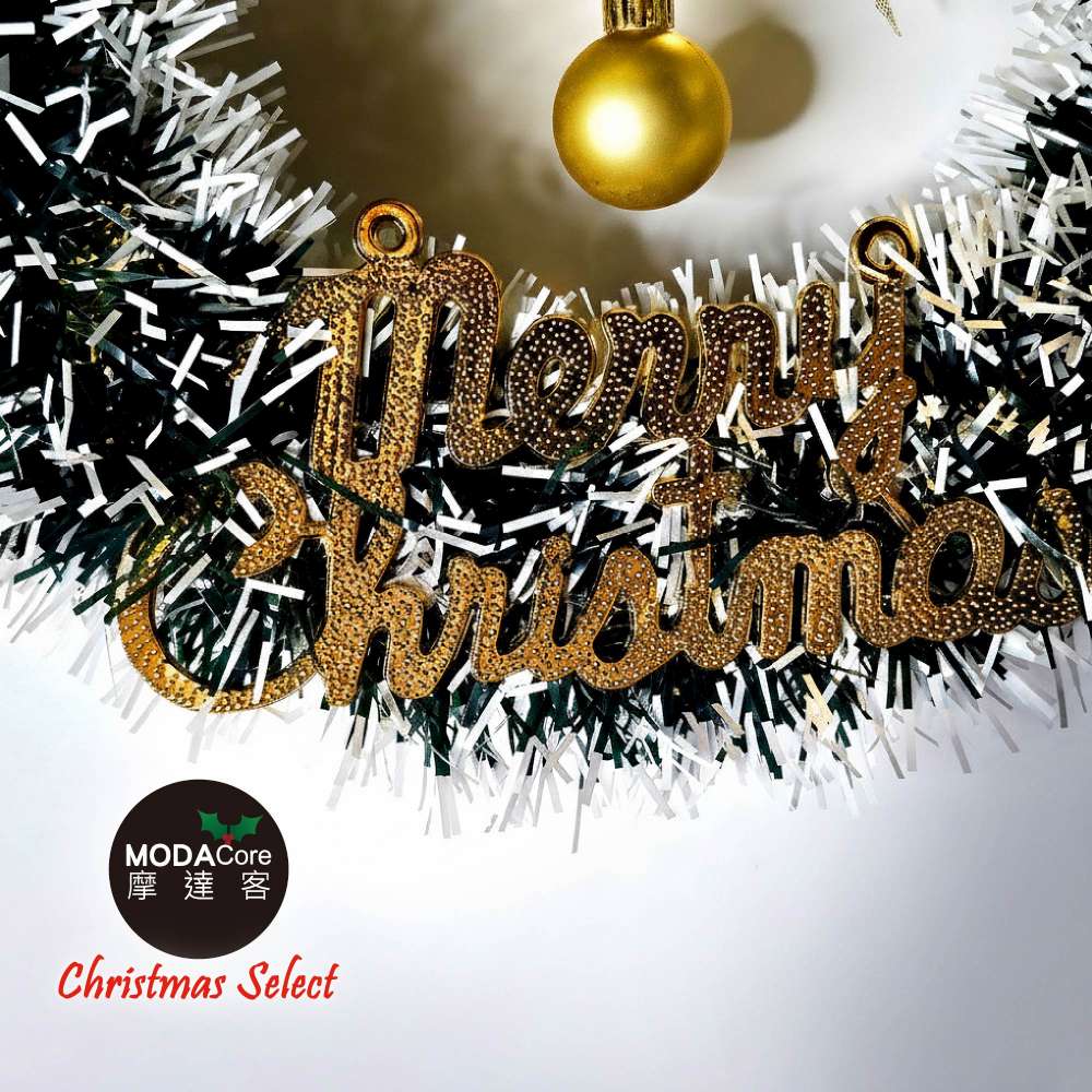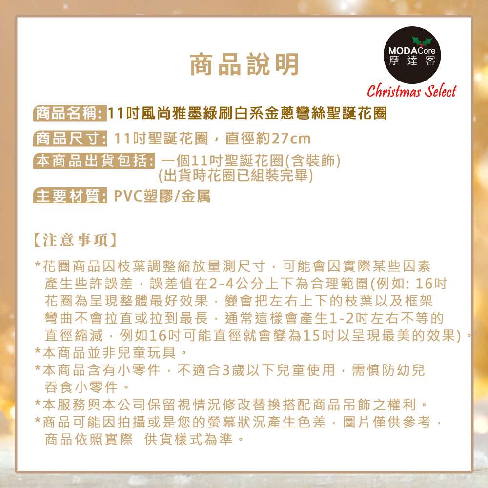 摩達客11吋風尚雅墨綠刷白系金蔥彎絲聖誕花圈_台灣工藝免組裝_本島免運費