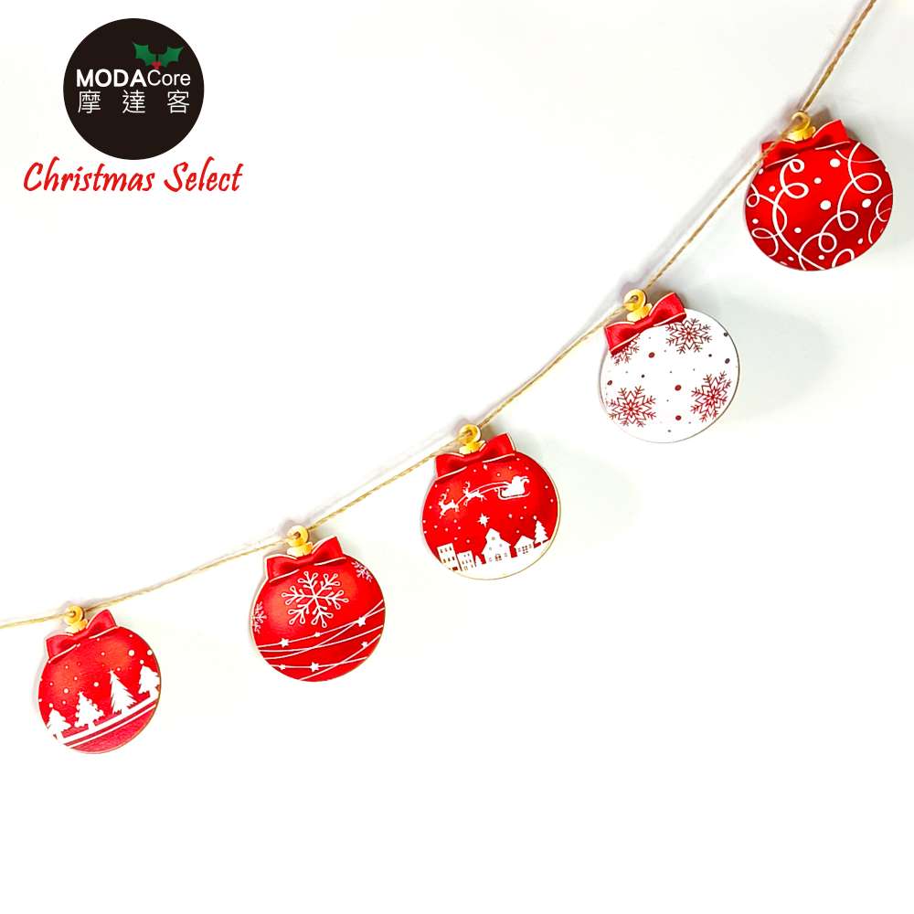 摩達客-紅白彩繪球聖誕木質吊飾-12款圖案36件組-交換禮物耶誕派對佈置
