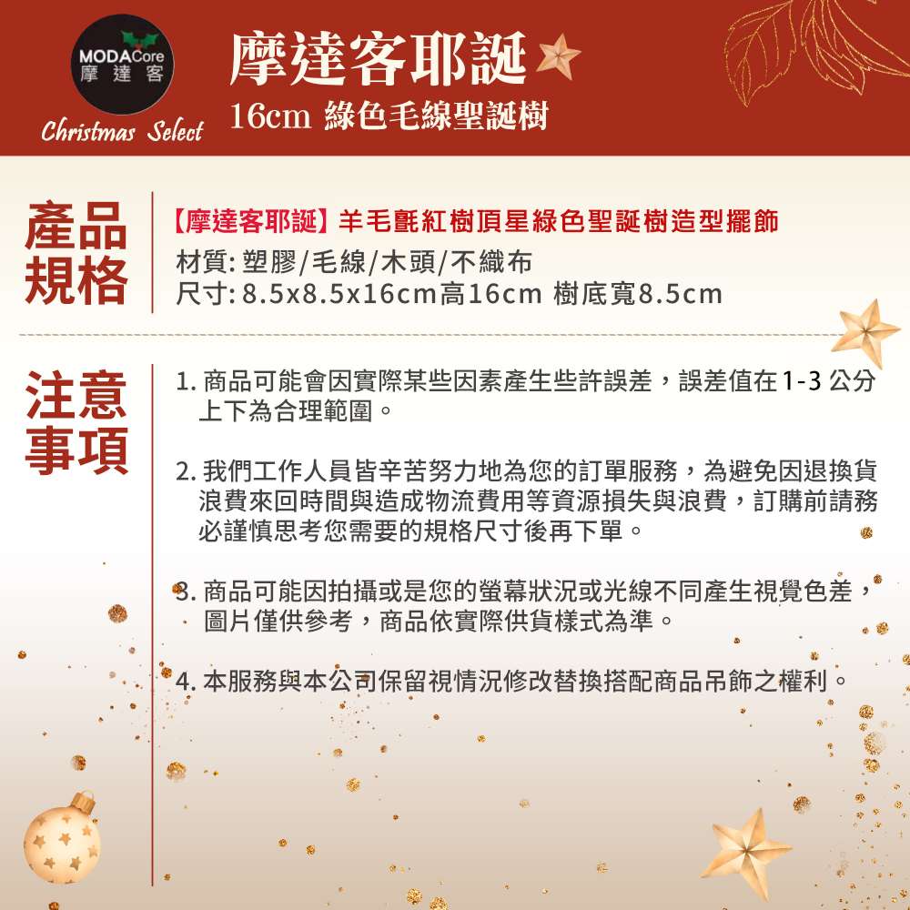 摩達客-羊毛氈紅樹頂星綠色聖誕樹造型擺飾品-交換禮物耶誕派對推薦