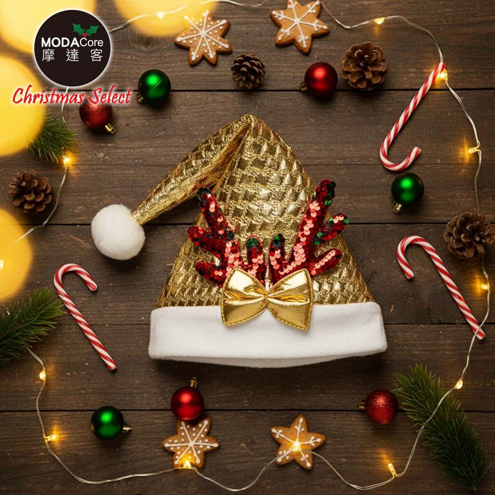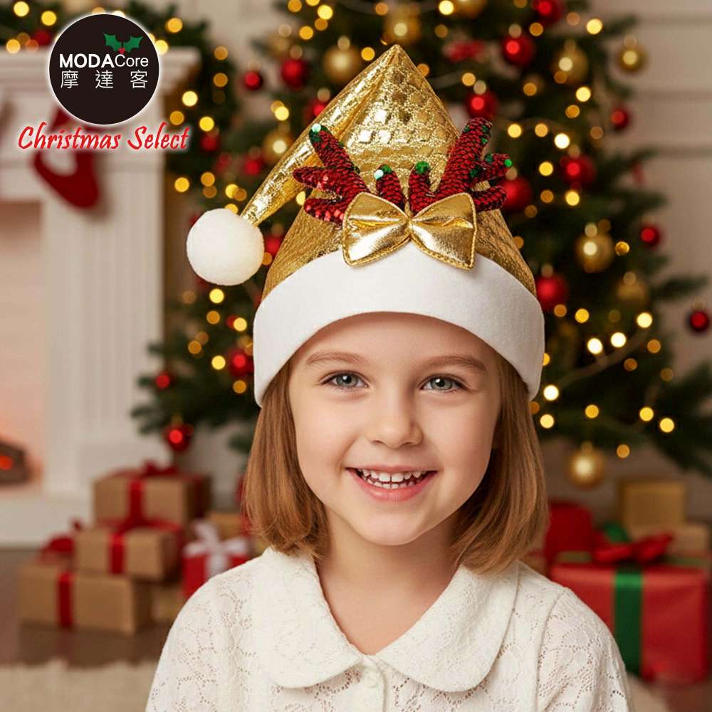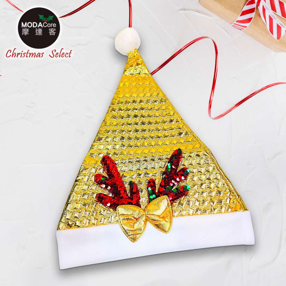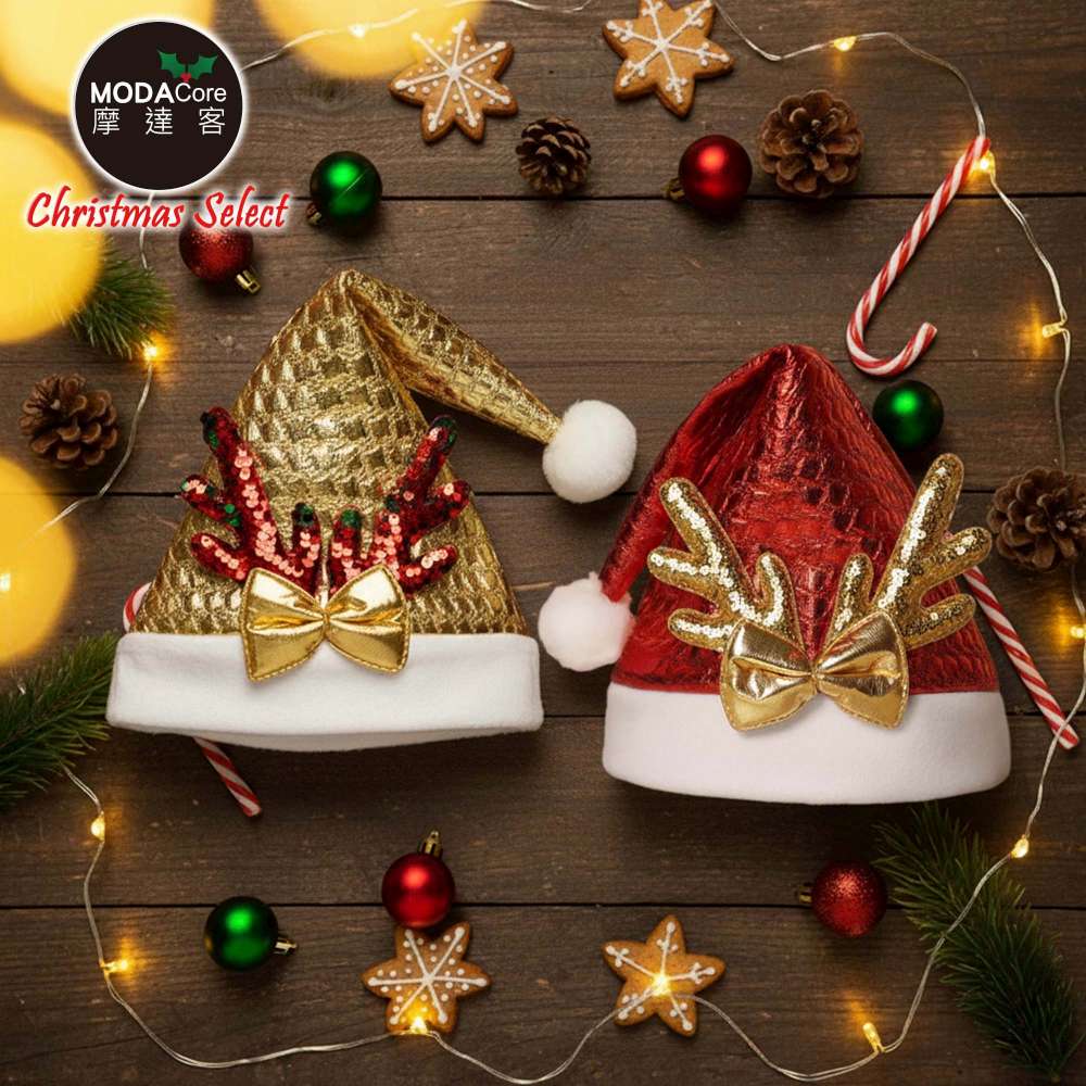 摩達客-金蔥格菱閃亮鹿角聖誕帽-金帽款-交換禮物耶誕派對推薦