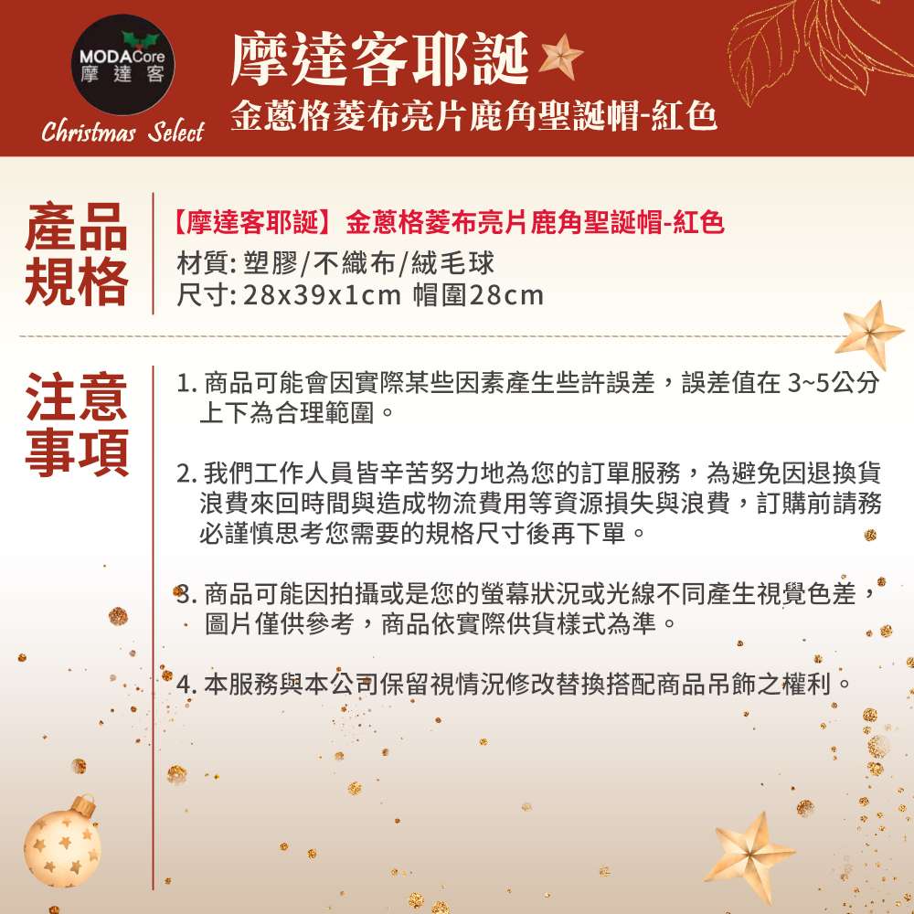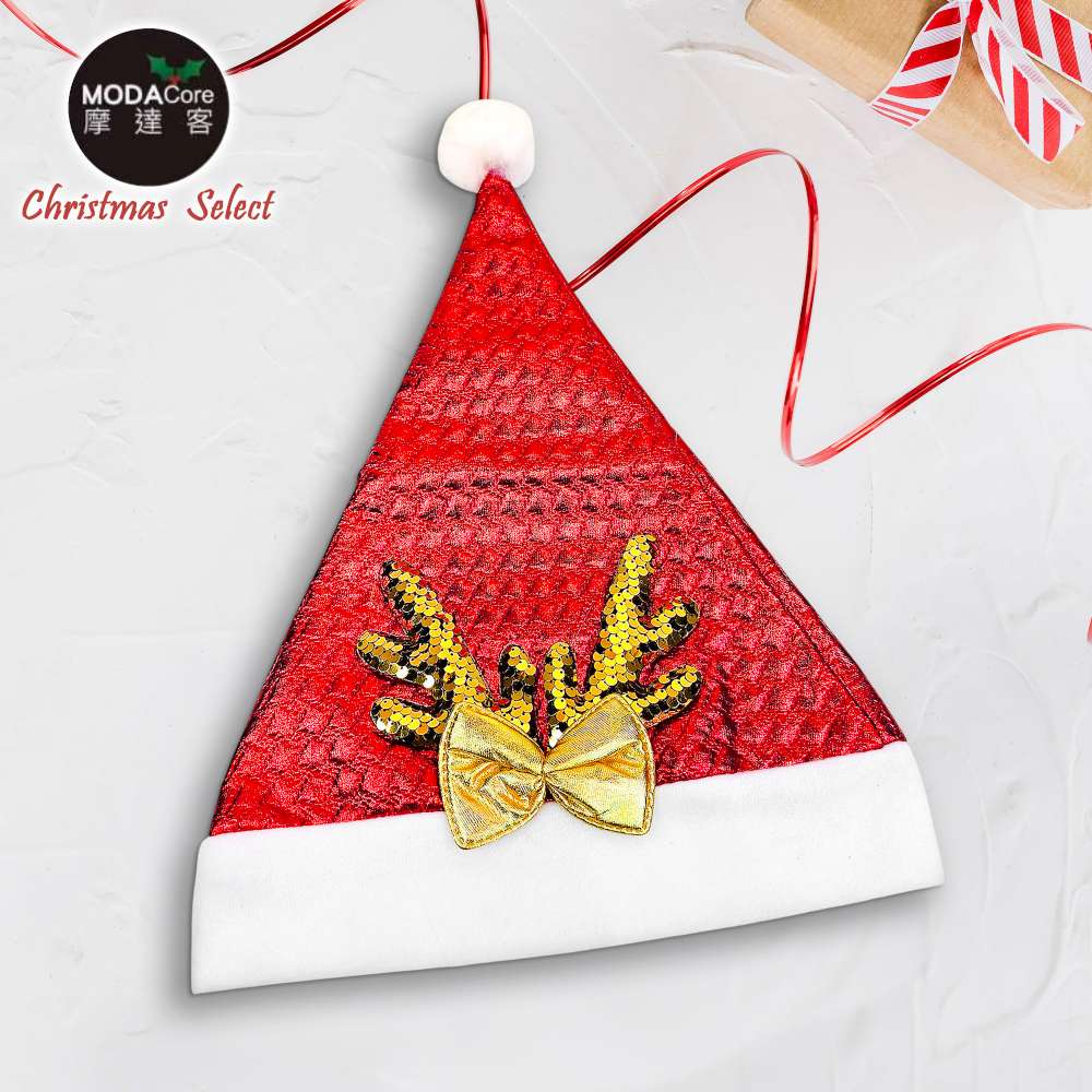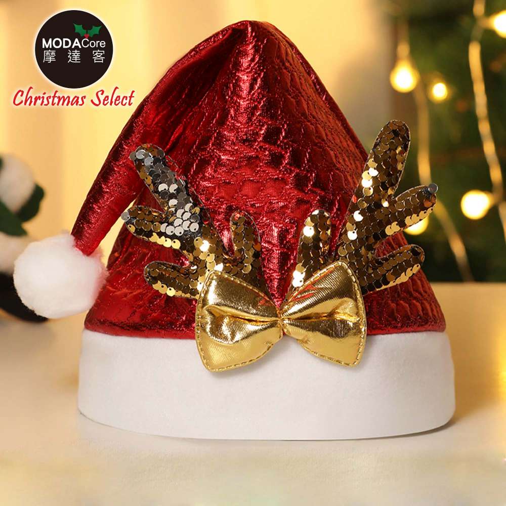 摩達客-金蔥格菱閃亮鹿角聖誕帽-紅帽款-交換禮物耶誕派對推薦