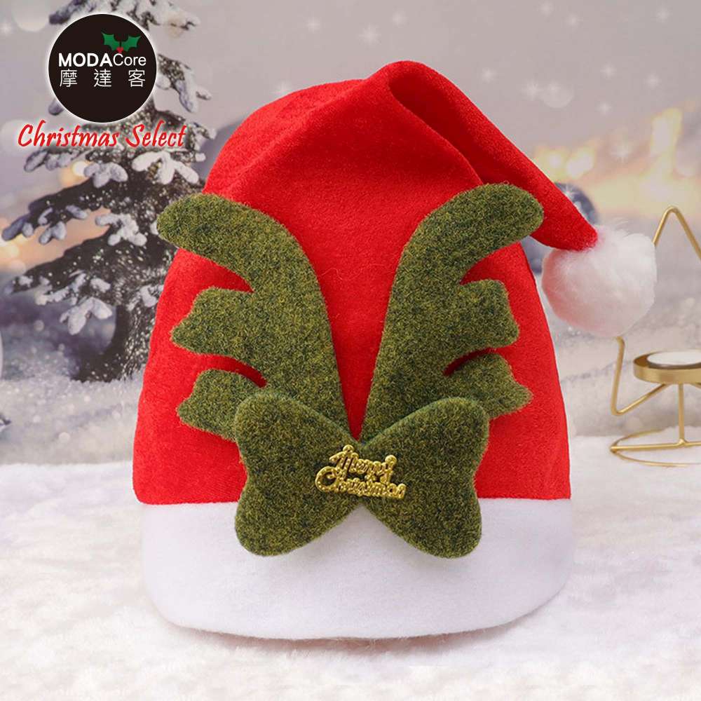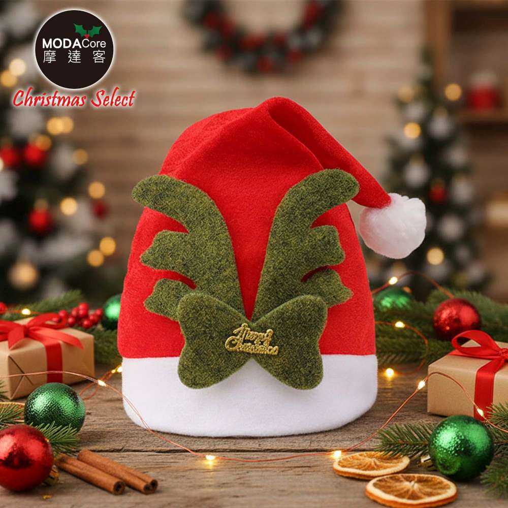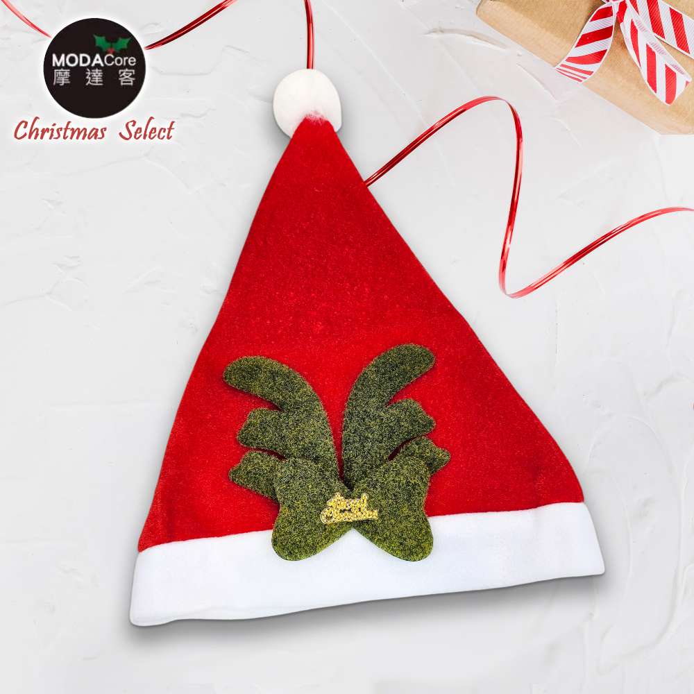 摩達客-紅絲絨布綠鹿角聖誕帽-交換禮物耶誕派對推薦