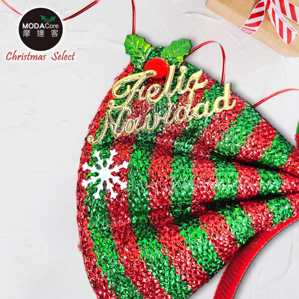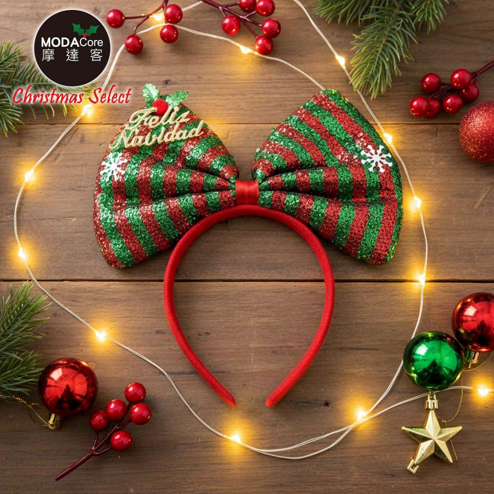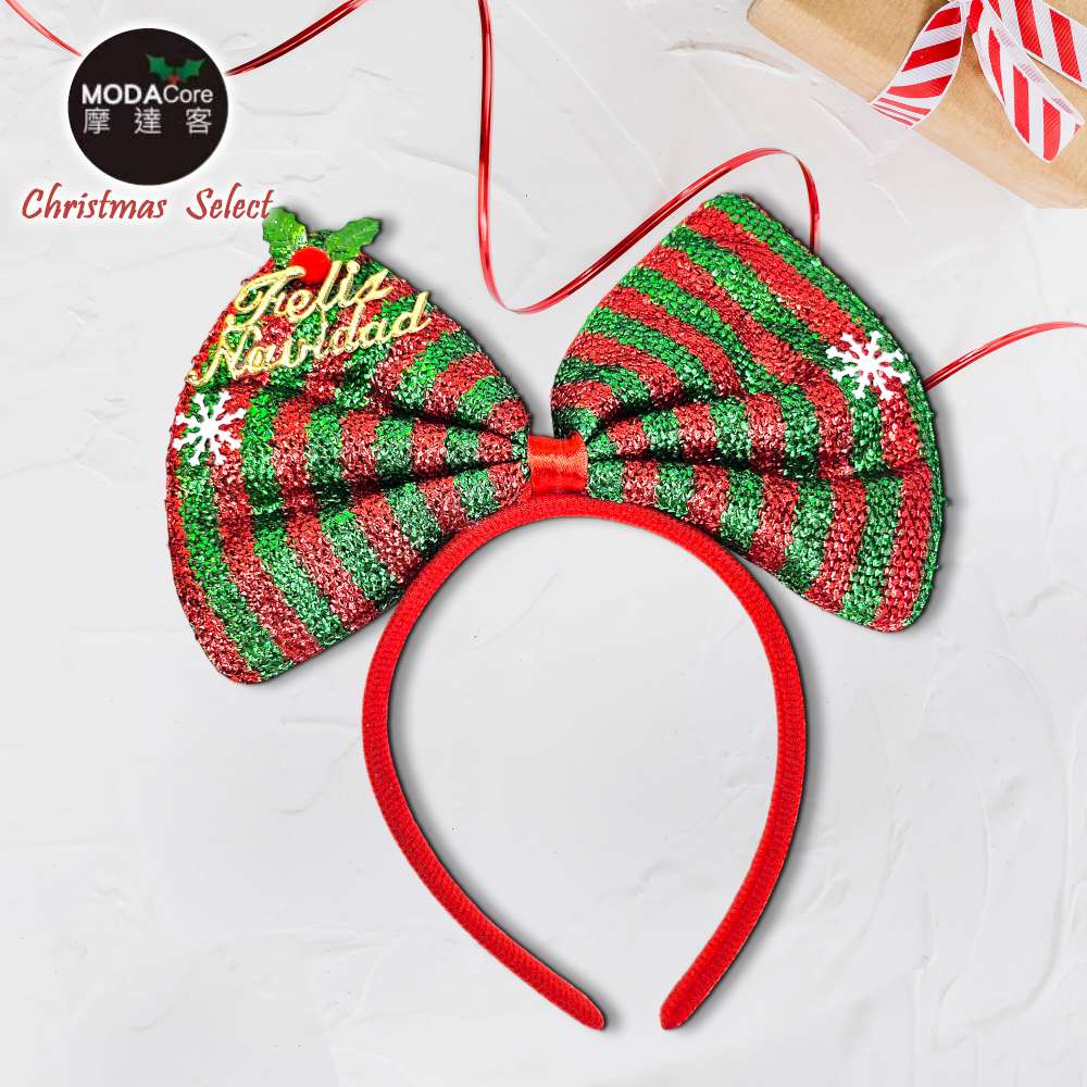 摩達客-聖誕可愛大蝴蝶結髮箍_紅綠款-耶誕派對交換禮物