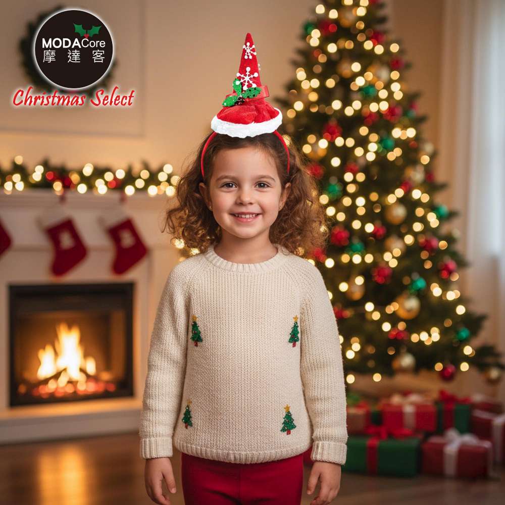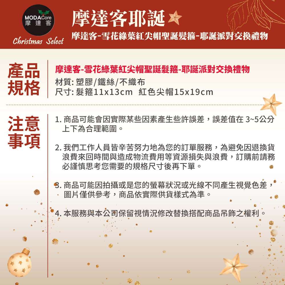 摩達客-雪花綠葉紅尖帽聖誕髮箍-耶誕派對交換禮物