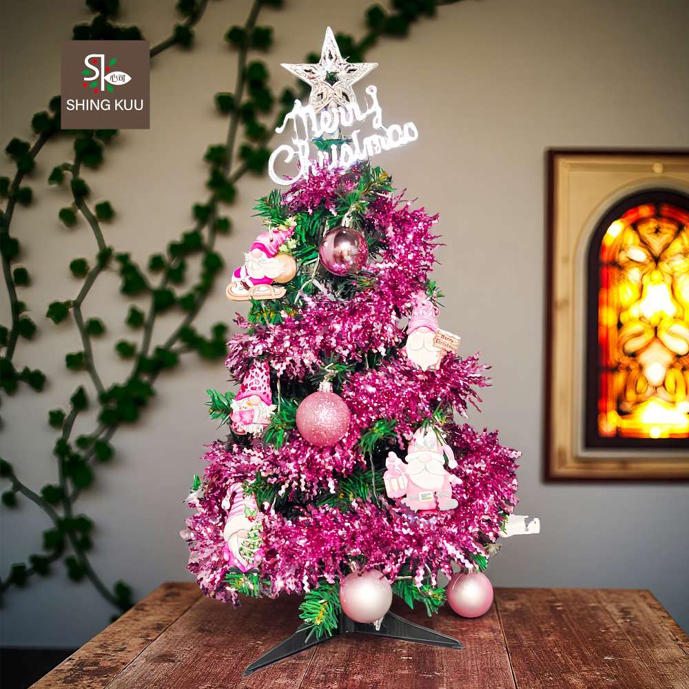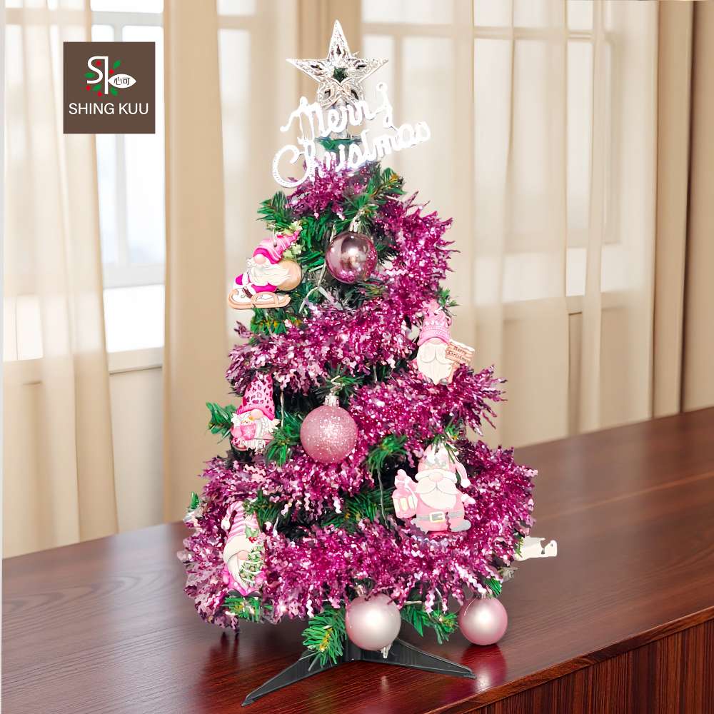 心可樂活-2尺60cm小美好套裝聖誕樹+2號夢幻粉紅聖誕老人彩繪木片飾品組_不含燈款_台灣本島免運費
