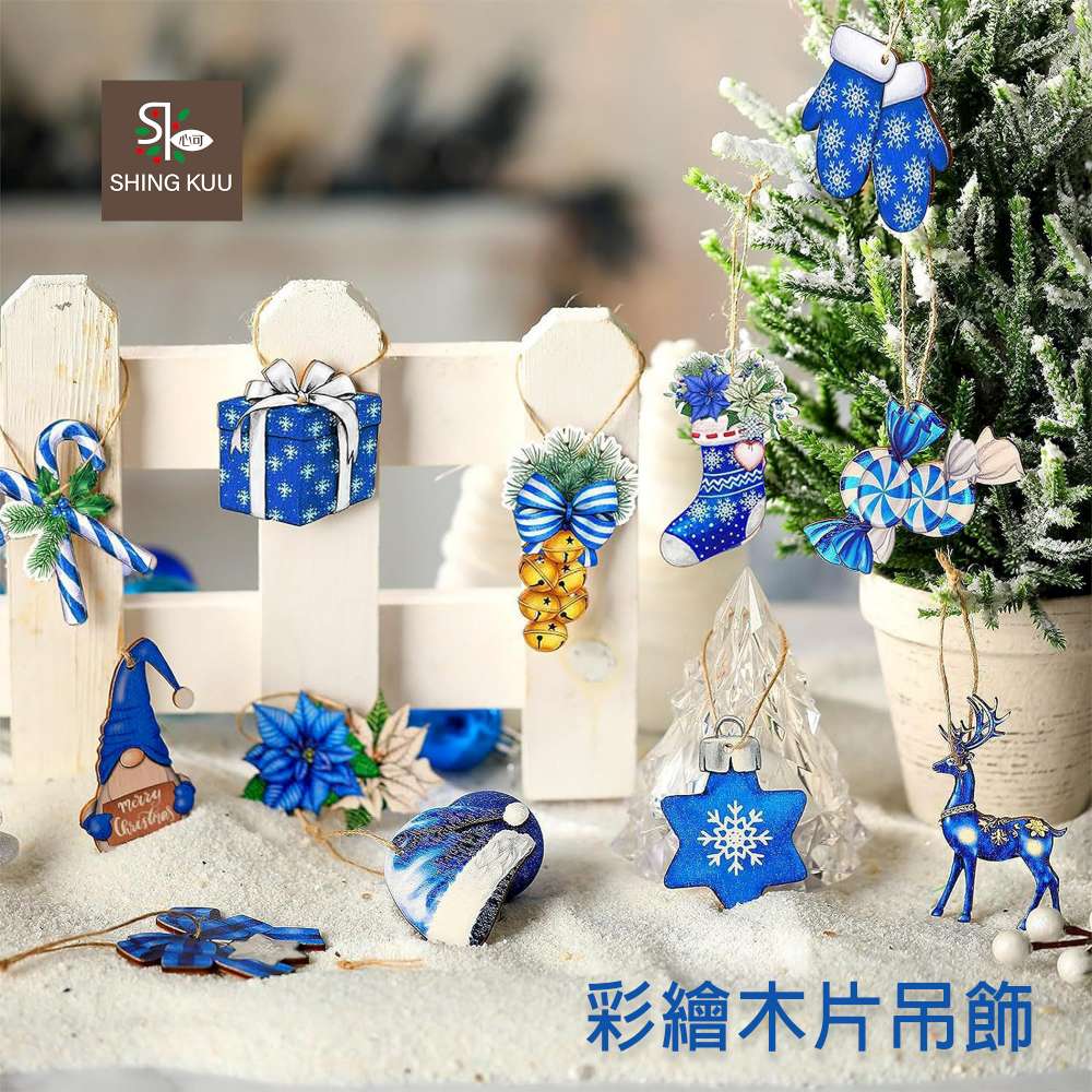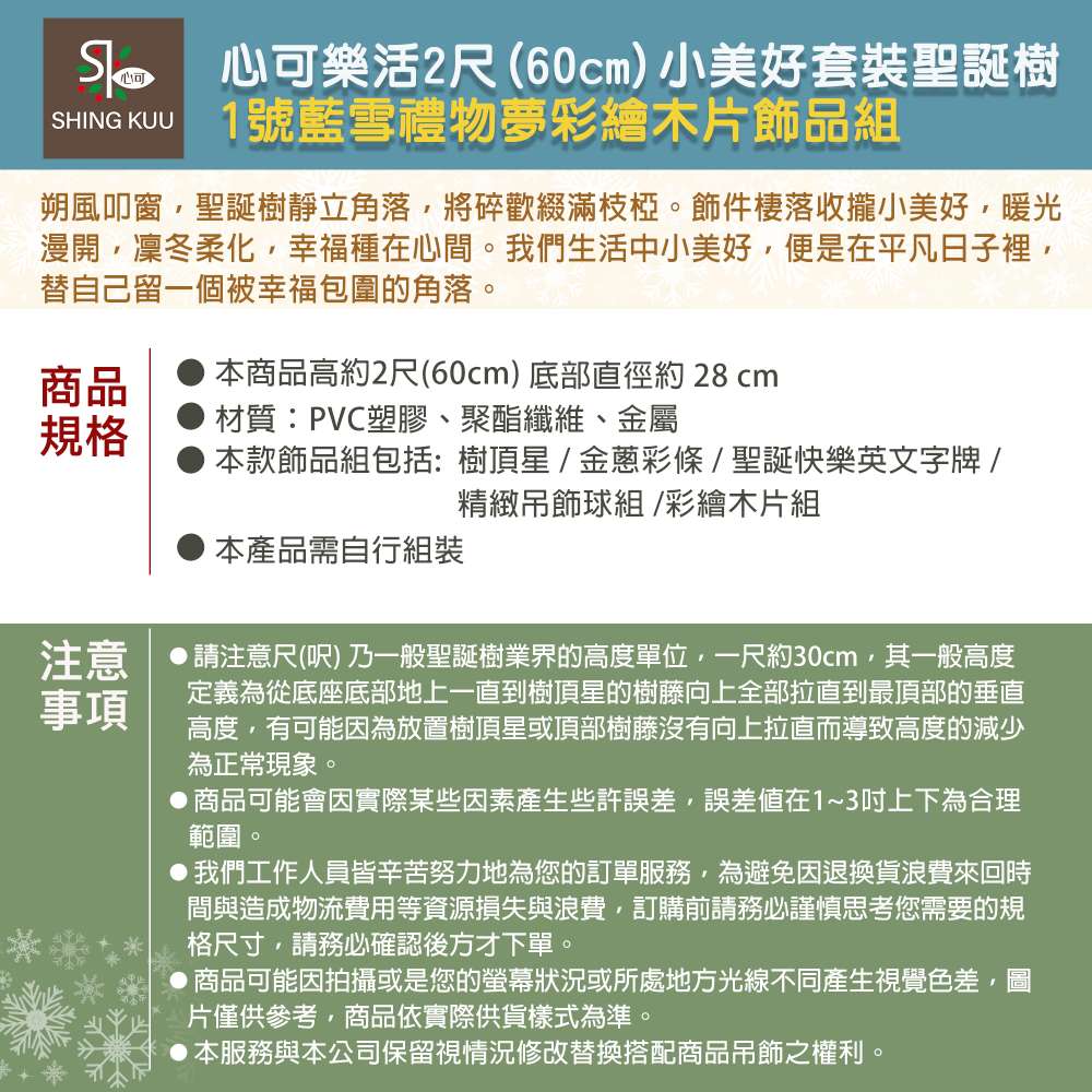 心可樂活-2尺60cm小美好套裝聖誕樹+1號藍雪禮物夢彩繪木片飾品組+LED暖白光20燈雪花燈串_台灣本島免運費