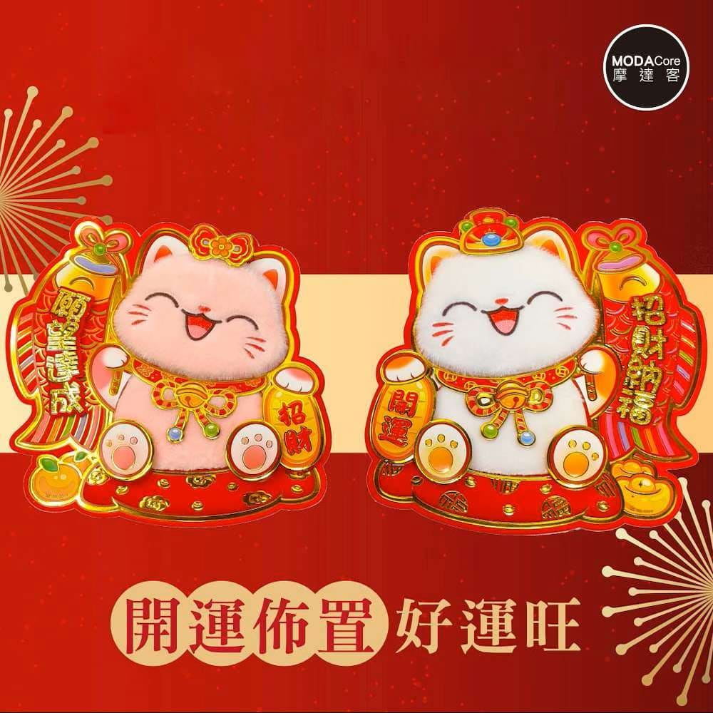 摩達客◉春節開運招財◉毛毛粉白願望招財貓鯉魚旗門聯對聯春聯兩片組