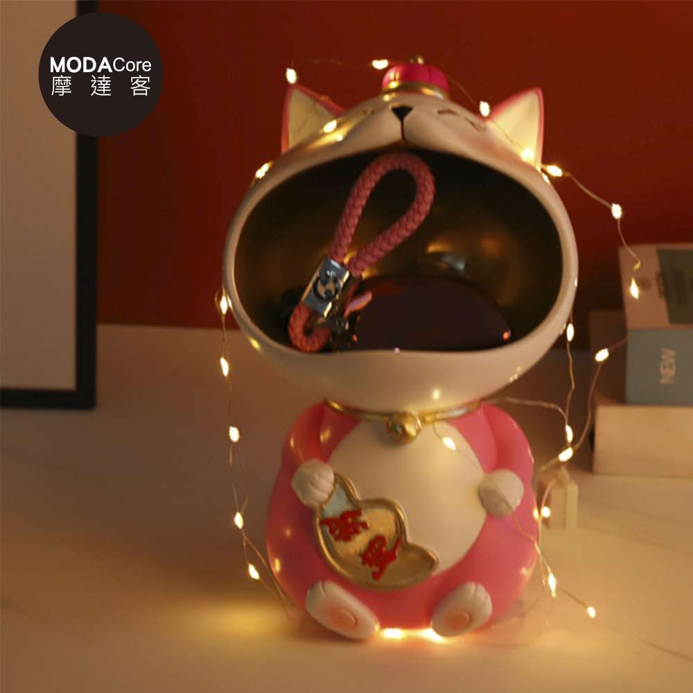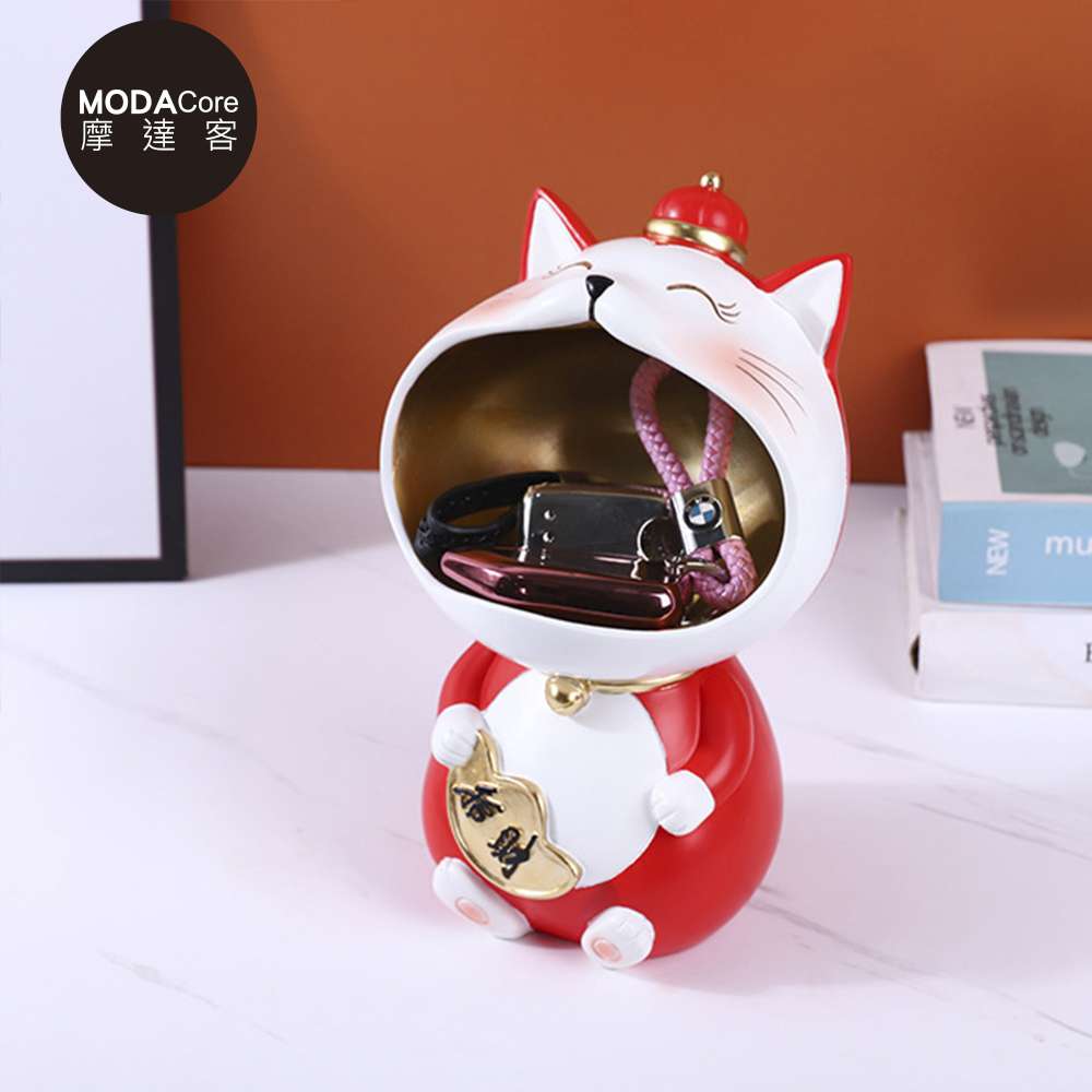 摩達客◉春節開運◉紅白大嘴招財猫擺飾-糖果收納聚寶盆